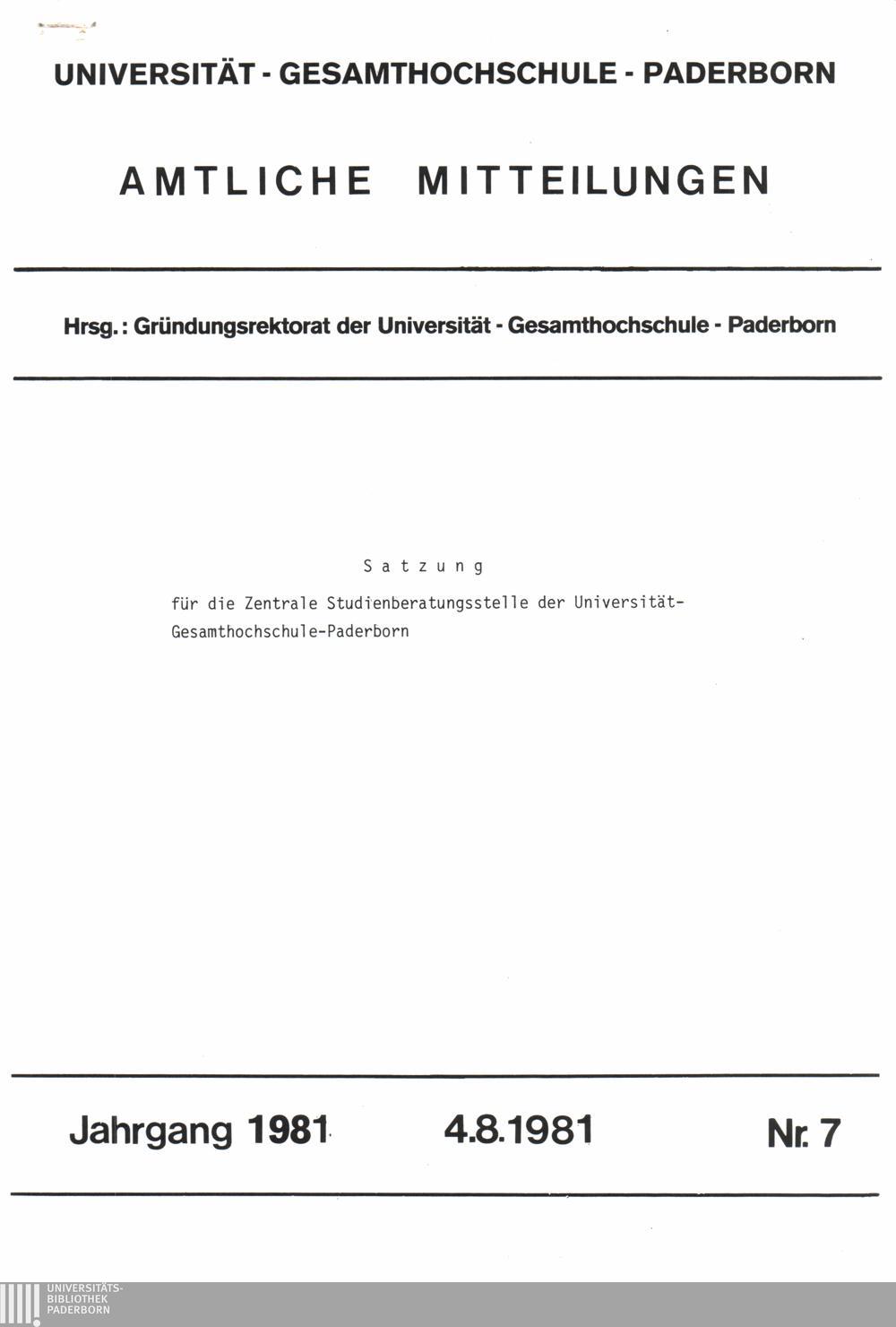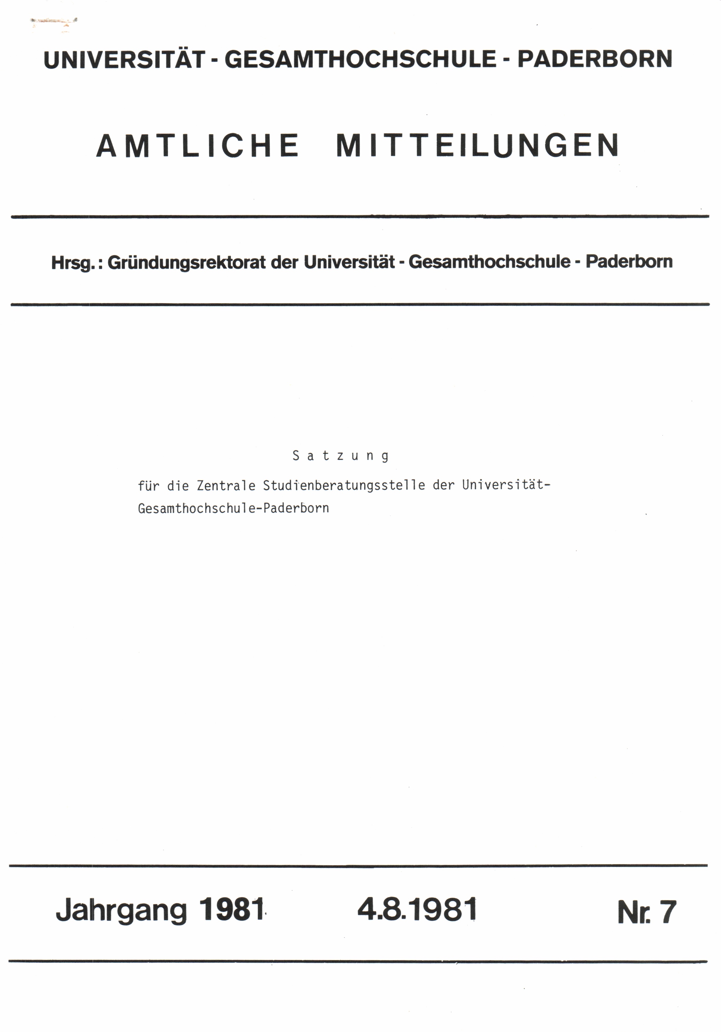 Satzung für die Zentrale Studienberatungsstelle der Universität-Gesamthochschule-Paderborn : 4.8.1981