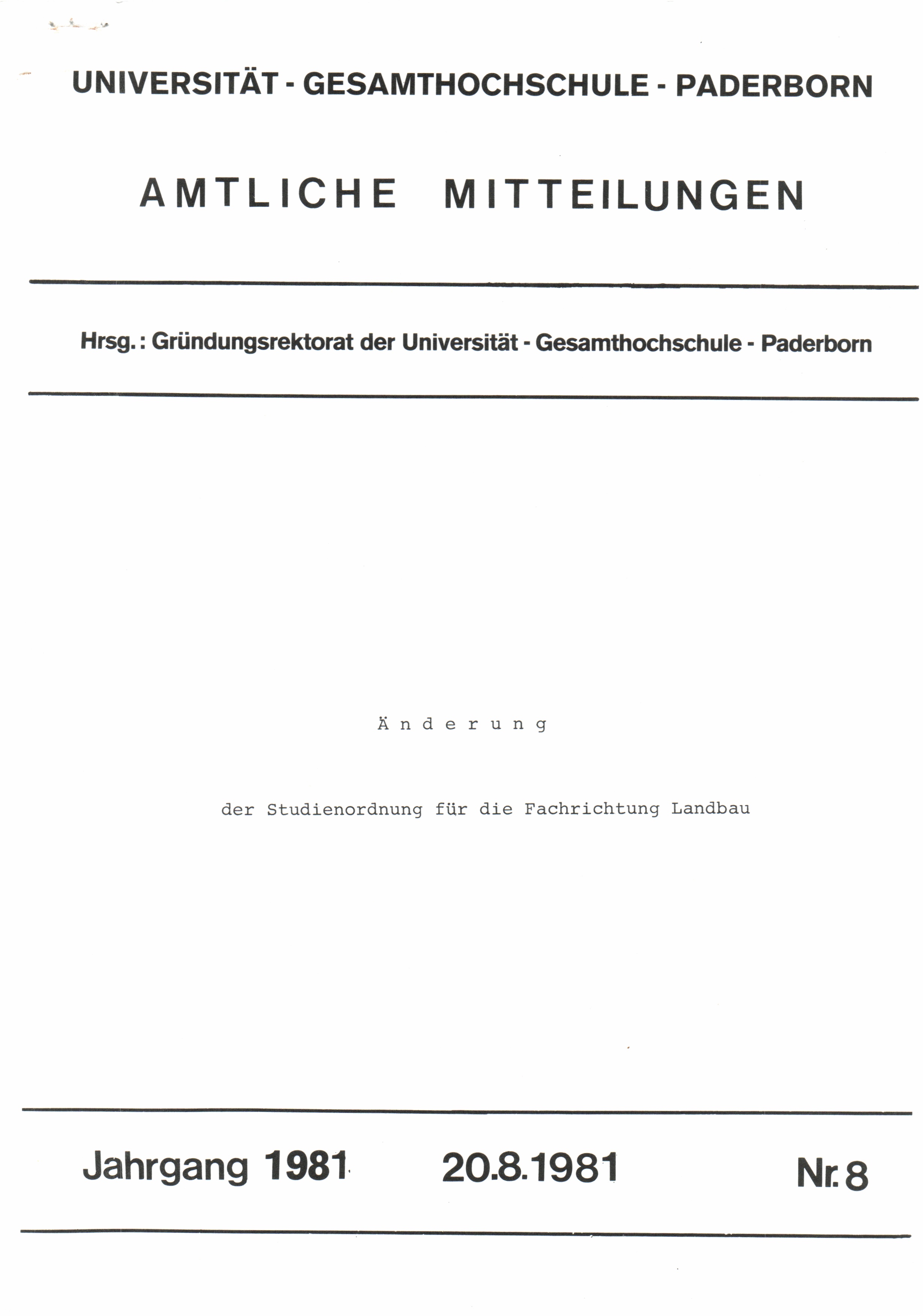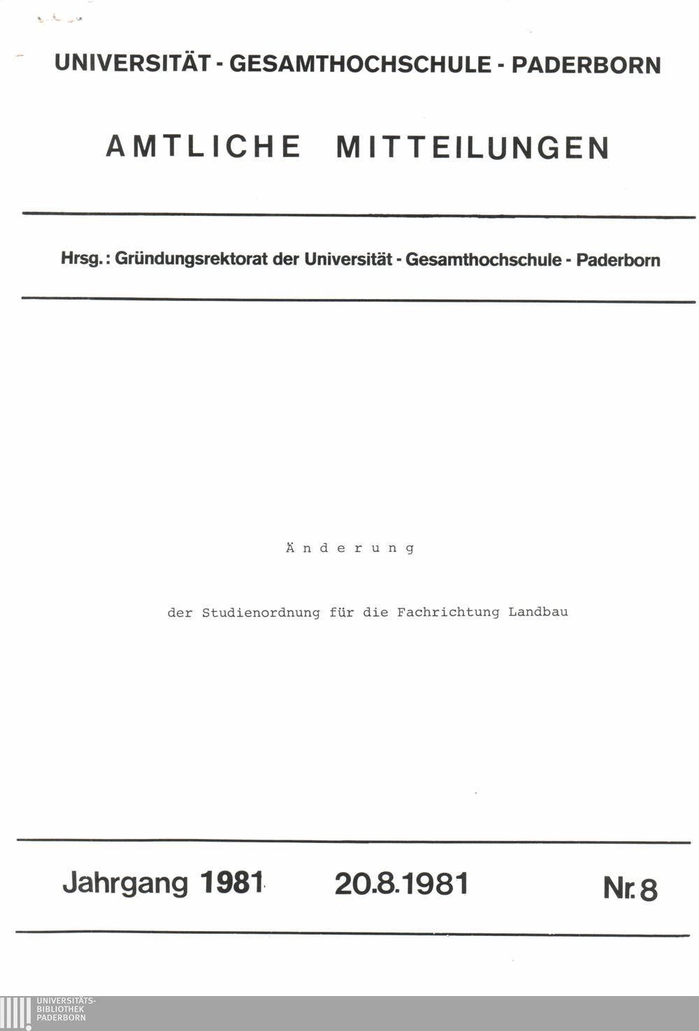 Änderung der Studienordnung für die Fachrichtung Landbau : 20.8.1981