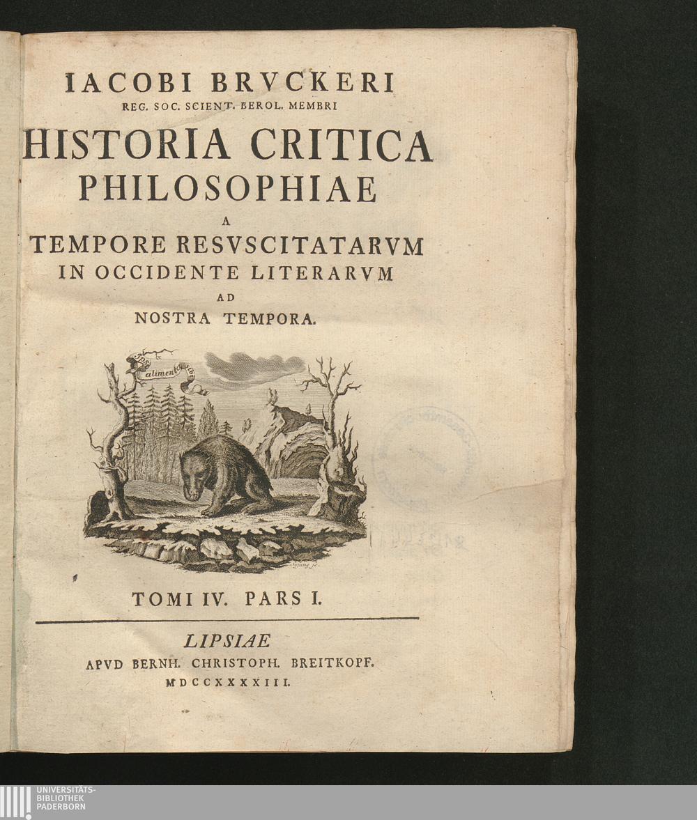 Iacobi Brvckeri Regiae Scient. Societatis, Qvae Berolini Floret, Membri Historia[...]