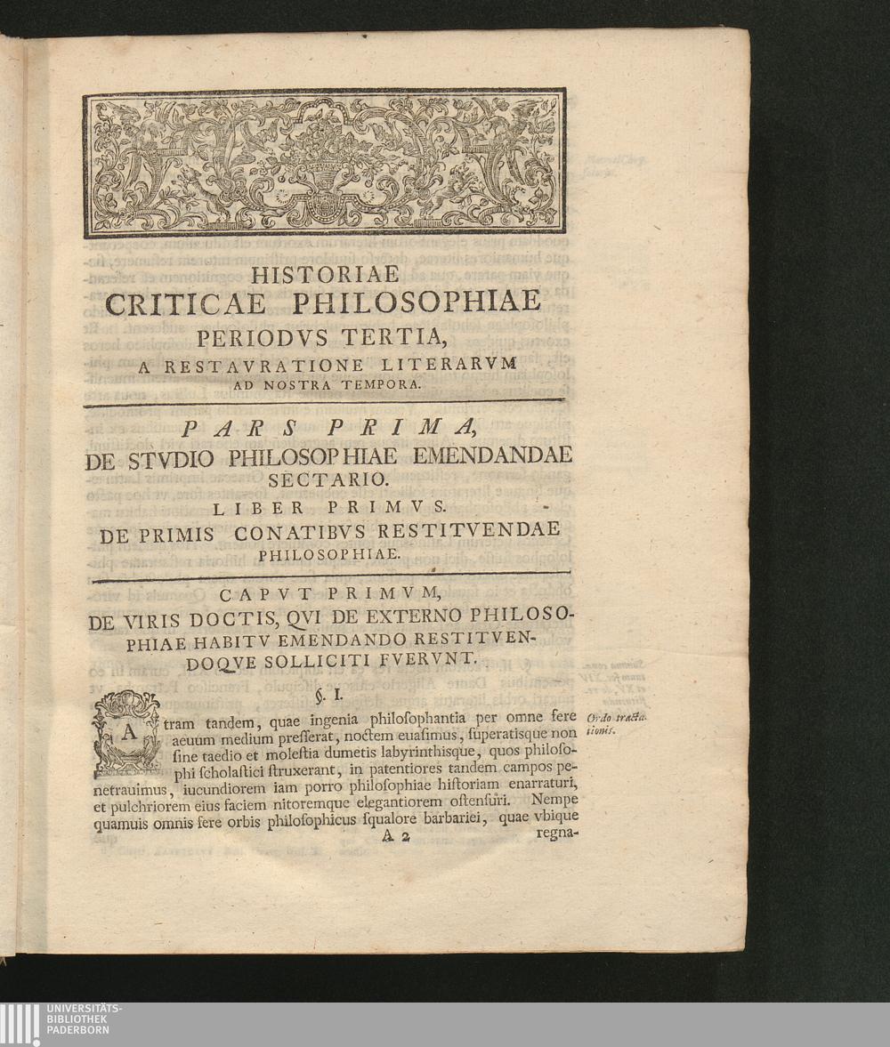 Capvt Primvm, De Viris Doctis, Qvi De Externo Philosophiae Habitv Emendando Restitvendoqve[...]