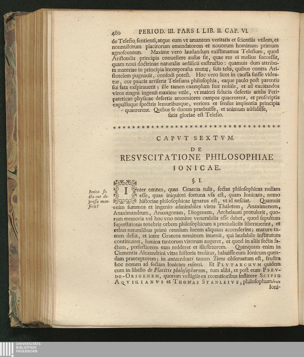 Capvt Sextvm. De Resvscitatione Philosophiae Ionicae.