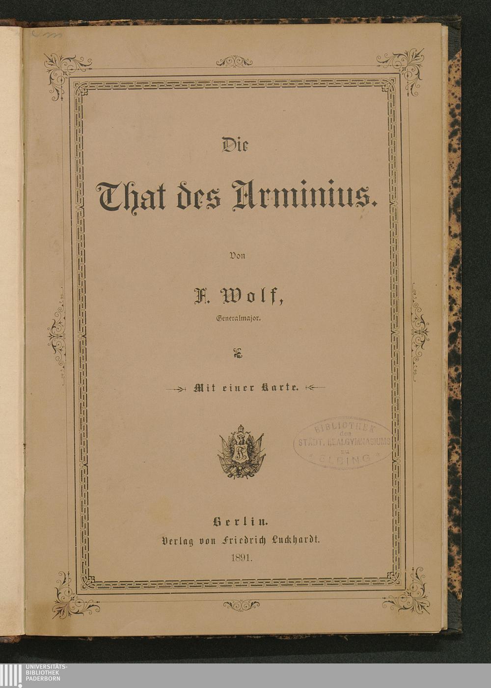 Die That des Arminius / von F. Wolf