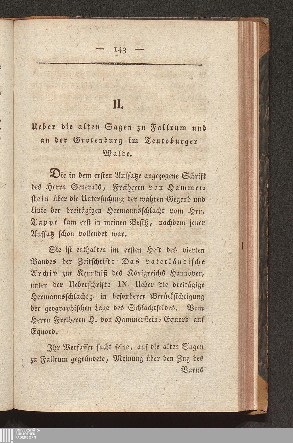 I. Erklärung über die Schrift: Die wahre Gegend und Linie der dreitägigen Hermannsschlacht. Mit einer Charte herausgegeben von Wilhelm Tappe.