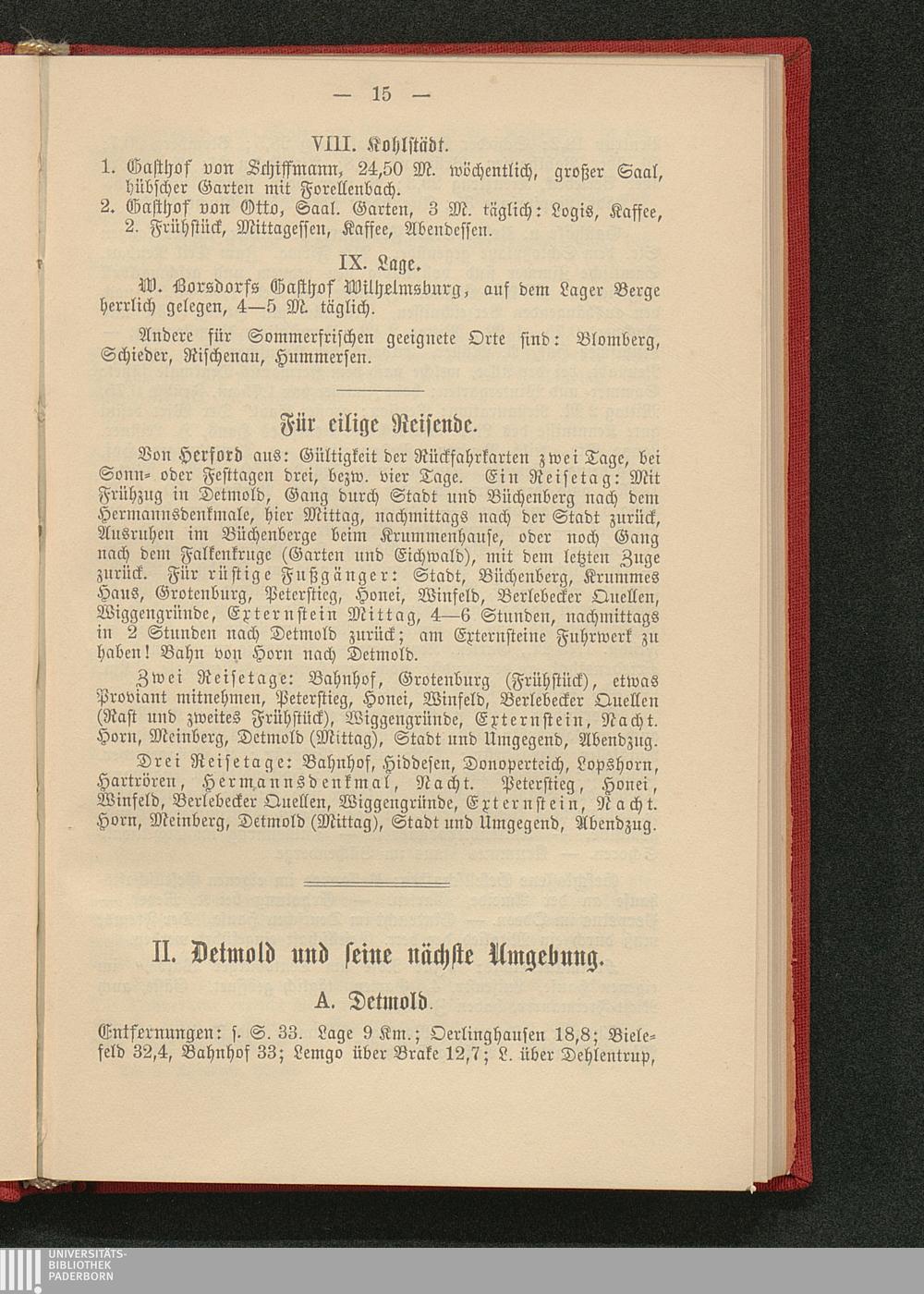 Der Teutoburger Wald : Detmold, Hermannsdenkmal, Externstein, das Fürstentum Lippe ; Direktiven für die Weser von Münden bis Minden ; Rundreisen von Hannover nach dem Teutoburger Walde und an die Weser ; ein Führer / von H. Thorbecke