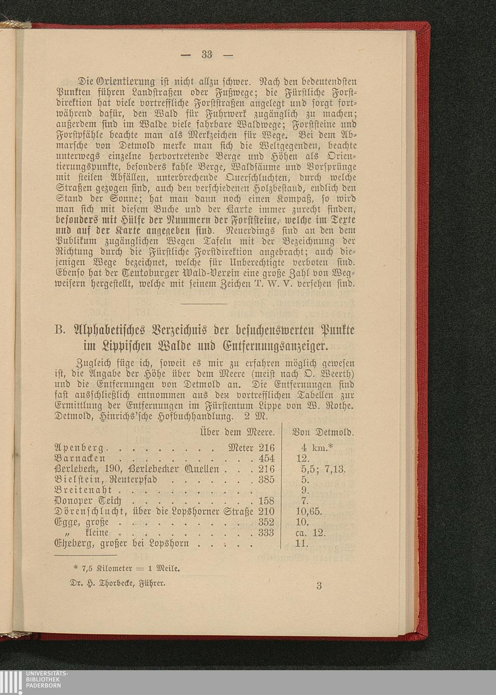 Der Teutoburger Wald : Detmold, Hermannsdenkmal, Externstein, das Fürstentum Lippe ; Direktiven für die Weser von Münden bis Minden ; Rundreisen von Hannover nach dem Teutoburger Walde und an die Weser ; ein Führer / von H. Thorbecke