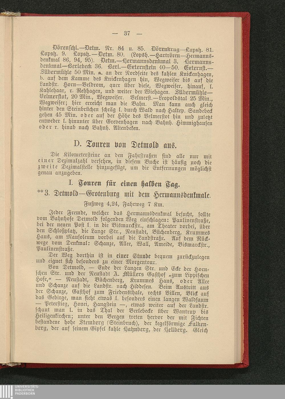 Der Teutoburger Wald : Detmold, Hermannsdenkmal, Externstein, das Fürstentum Lippe ; Direktiven für die Weser von Münden bis Minden ; Rundreisen von Hannover nach dem Teutoburger Walde und an die Weser ; ein Führer / von H. Thorbecke