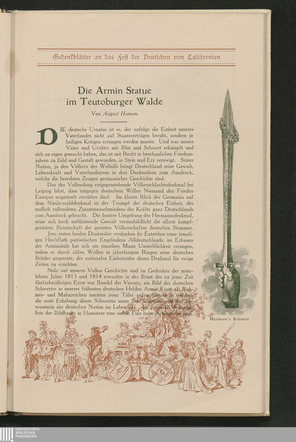 Neunzehnhundertste Jahresfeier der Schlacht im Teutoburger Walde : Gedenkblätter an das Fest der Deutschen von Californien ; San Francisco, 1. und 8. August 1909 / Großloge des Ordens der Hermanns-Söhne