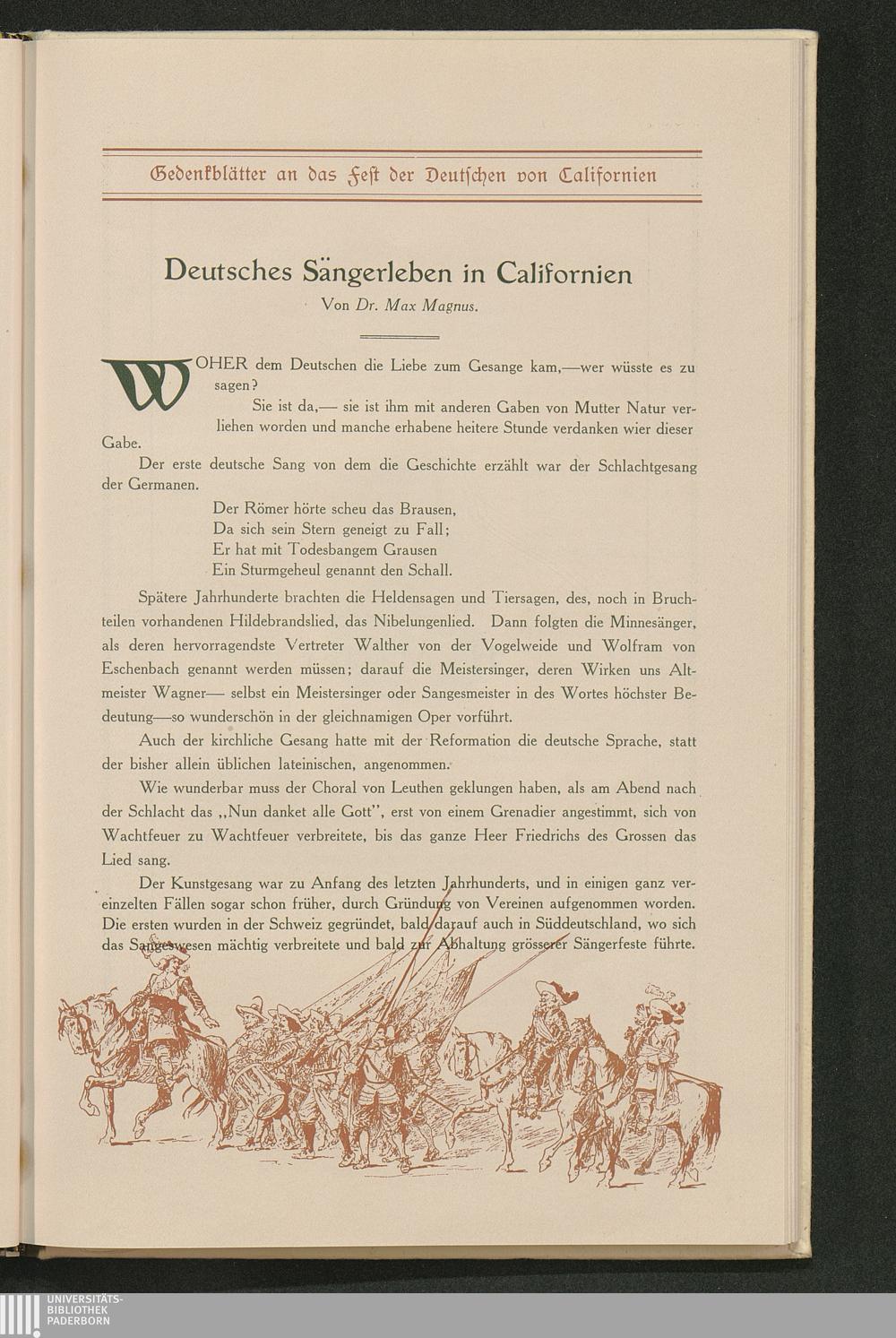 Neunzehnhundertste Jahresfeier der Schlacht im Teutoburger Walde : Gedenkblätter an das Fest der Deutschen von Californien ; San Francisco, 1. und 8. August 1909 / Großloge des Ordens der Hermanns-Söhne