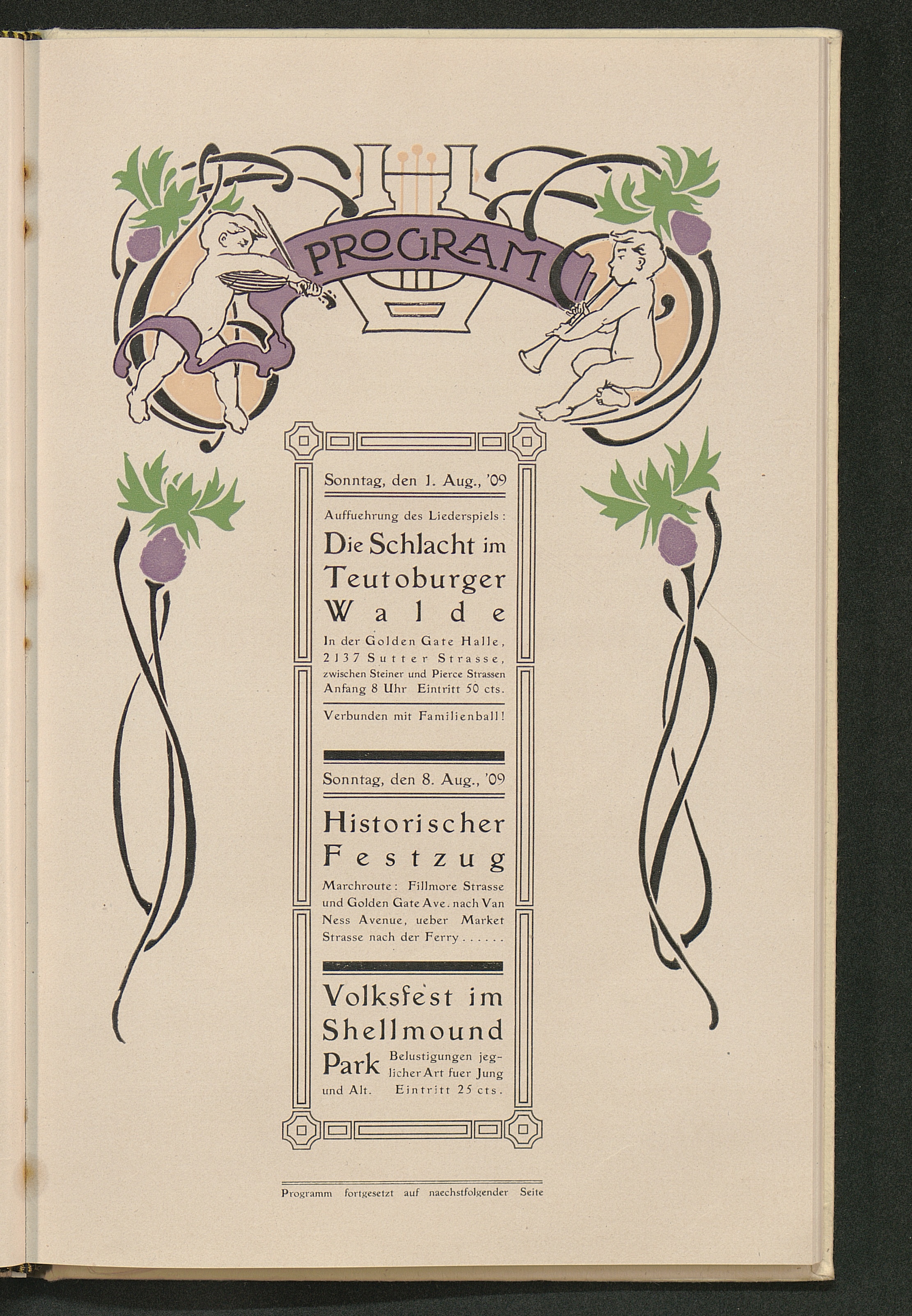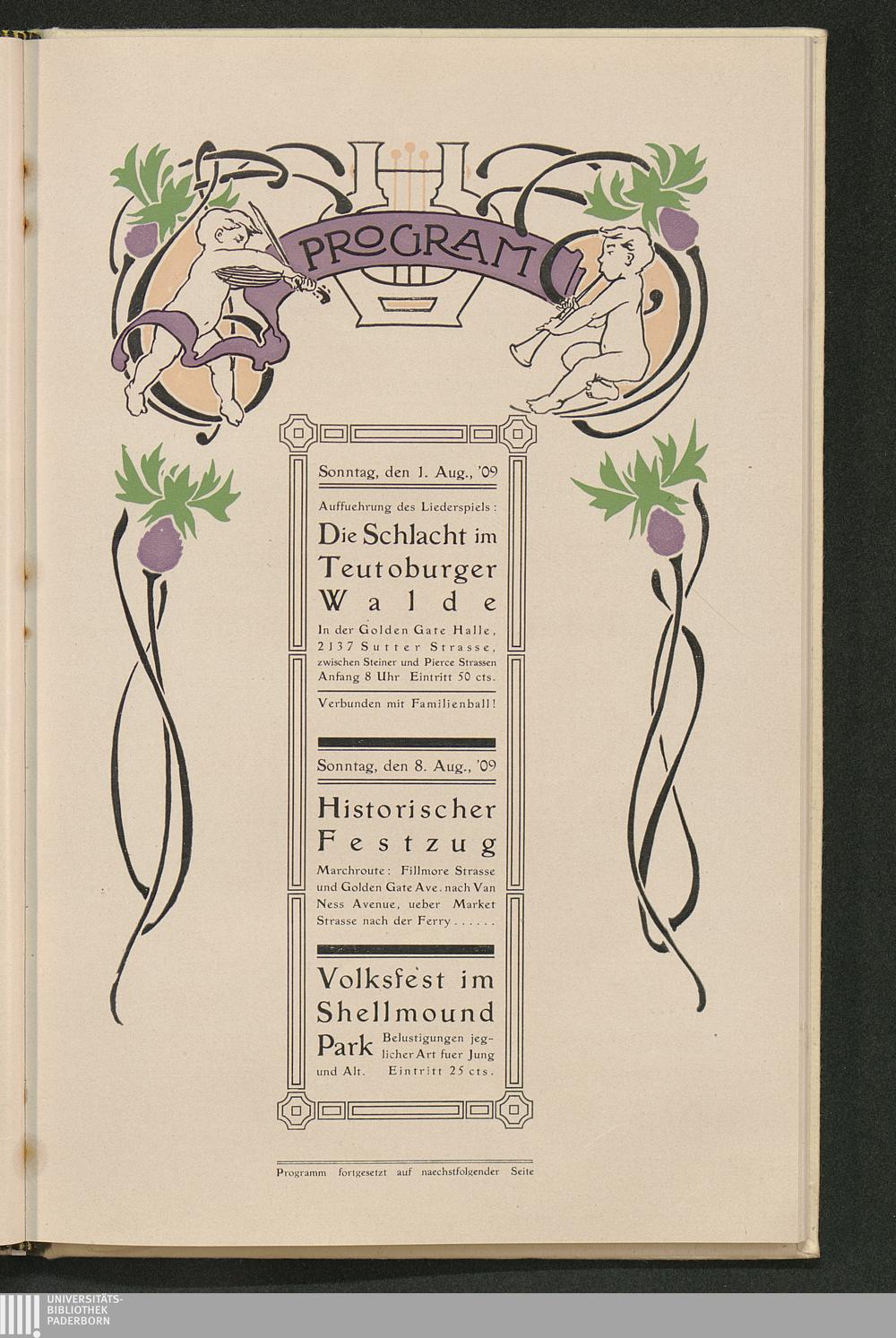 Neunzehnhundertste Jahresfeier der Schlacht im Teutoburger Walde : Gedenkblätter an das Fest der Deutschen von Californien ; San Francisco, 1. und 8. August 1909 / Großloge des Ordens der Hermanns-Söhne