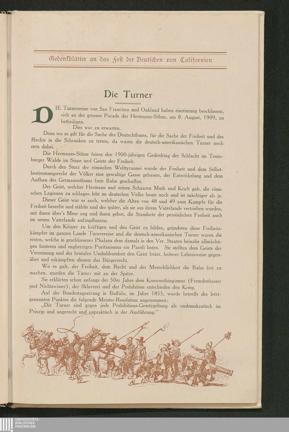 Neunzehnhundertste Jahresfeier der Schlacht im Teutoburger Walde : Gedenkblätter an das Fest der Deutschen von Californien ; San Francisco, 1. und 8. August 1909 / Großloge des Ordens der Hermanns-Söhne