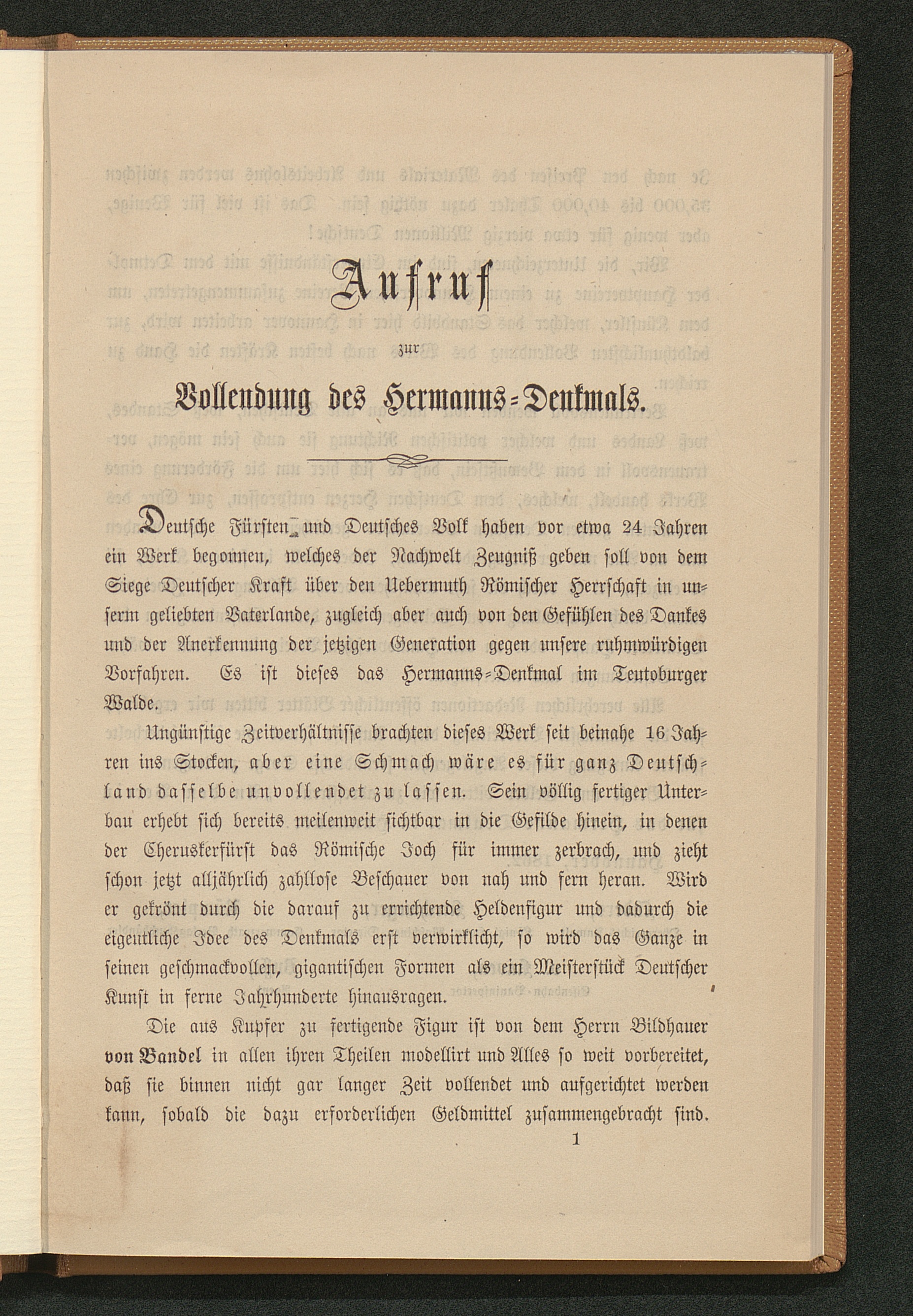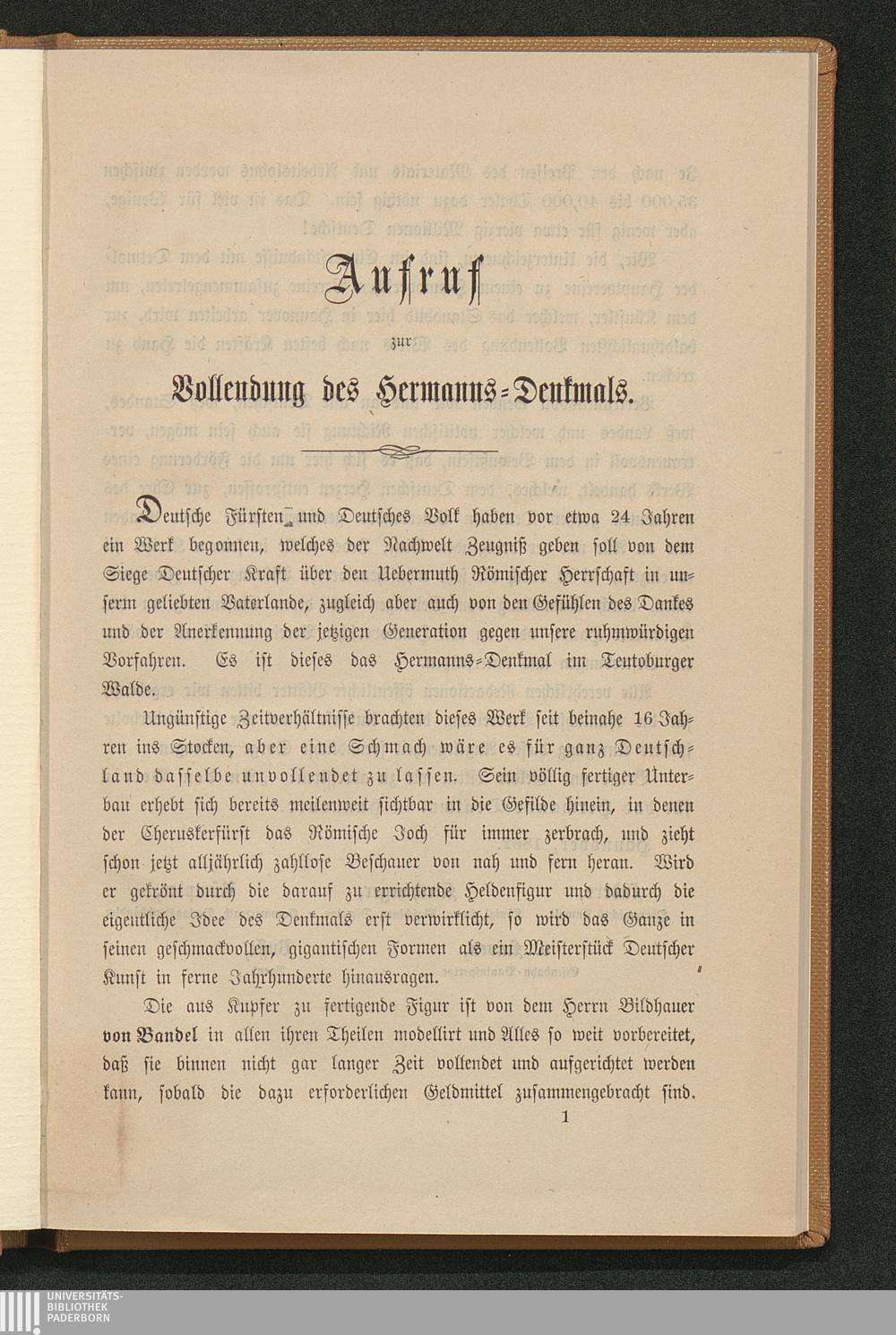 Aufruf zur Vollendung des Hermanns-Denkmals.