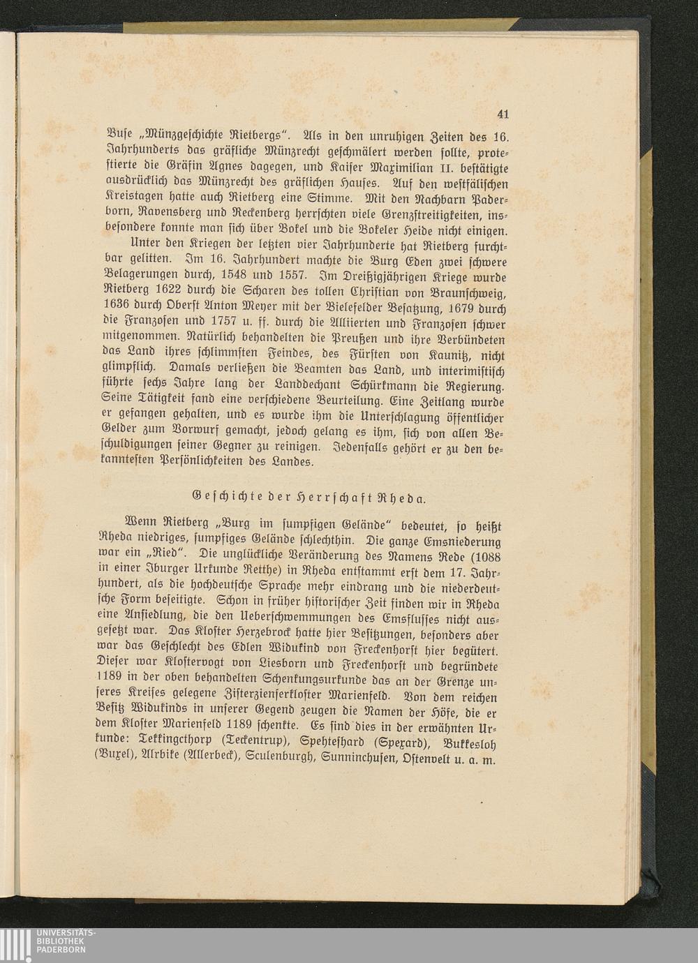 d) Geschichte der Herrschaft Rheda.