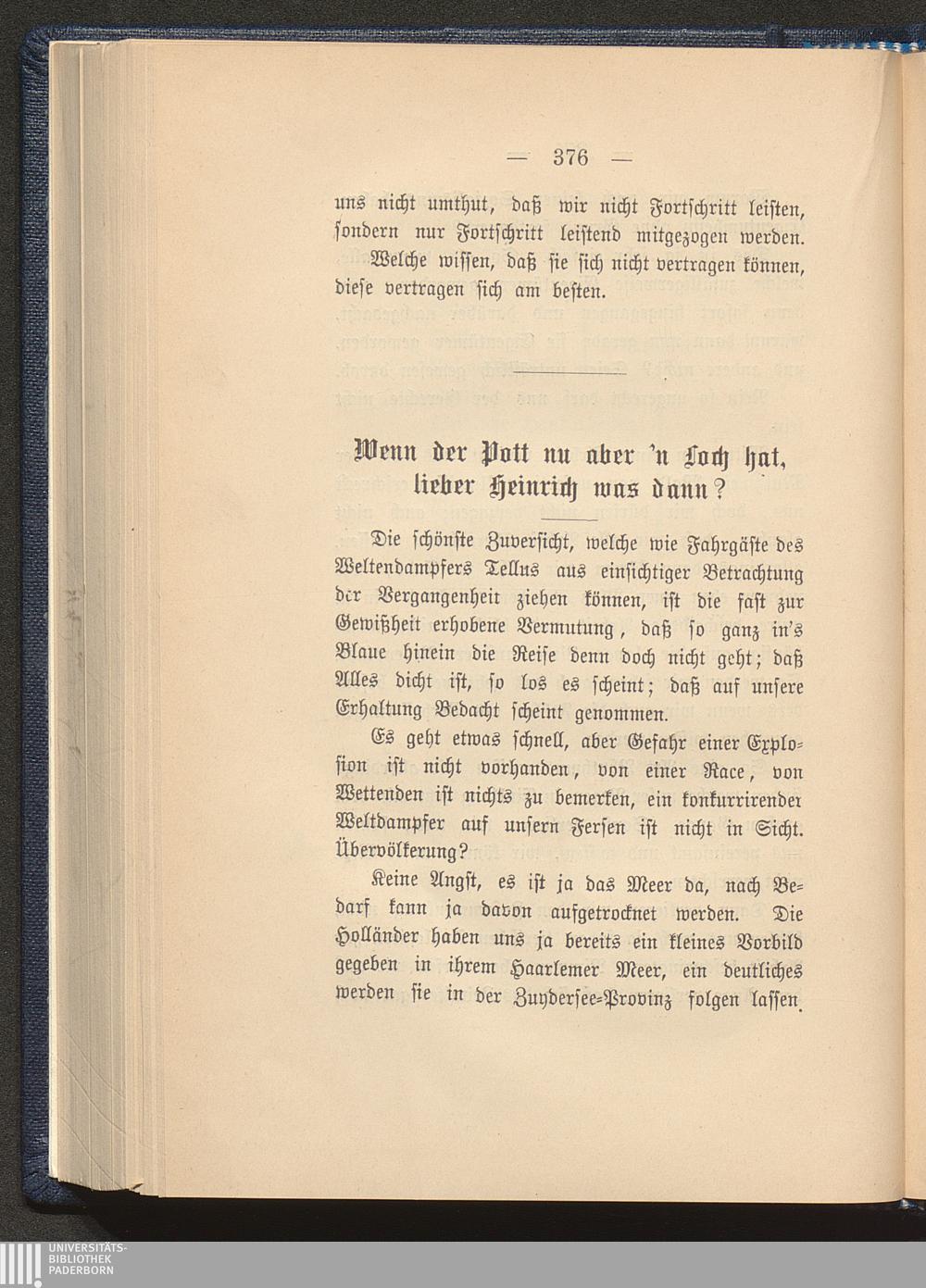 Wenn der Pott nu aber'n Loch hat lieber Heinrich was dann