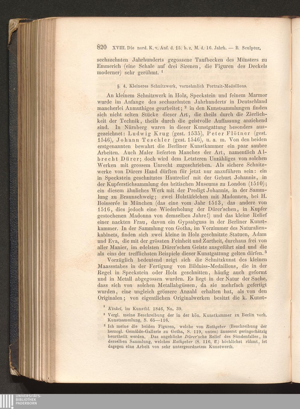 §. 4. Kleineres Schnitzwerk, vornehmlich Portrait-Medaillons