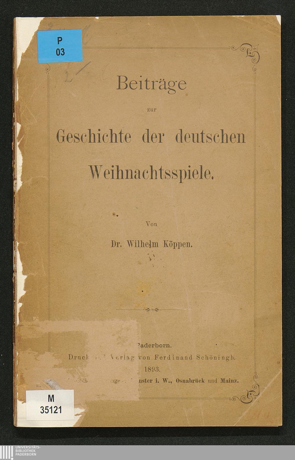 Beiträge zur Geschichte der deutschen Weihnachtsspiele / von Wilhelm Köppen