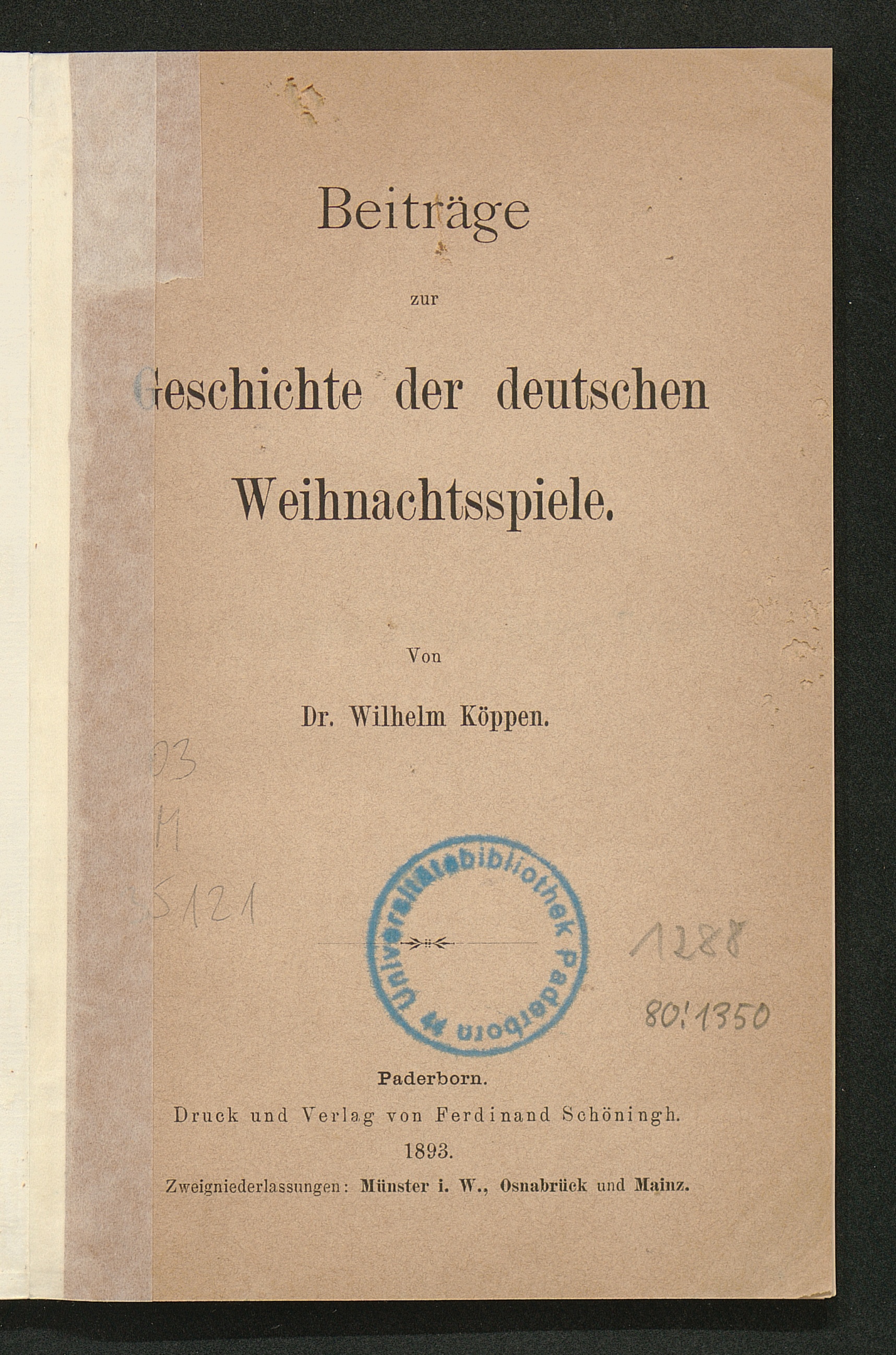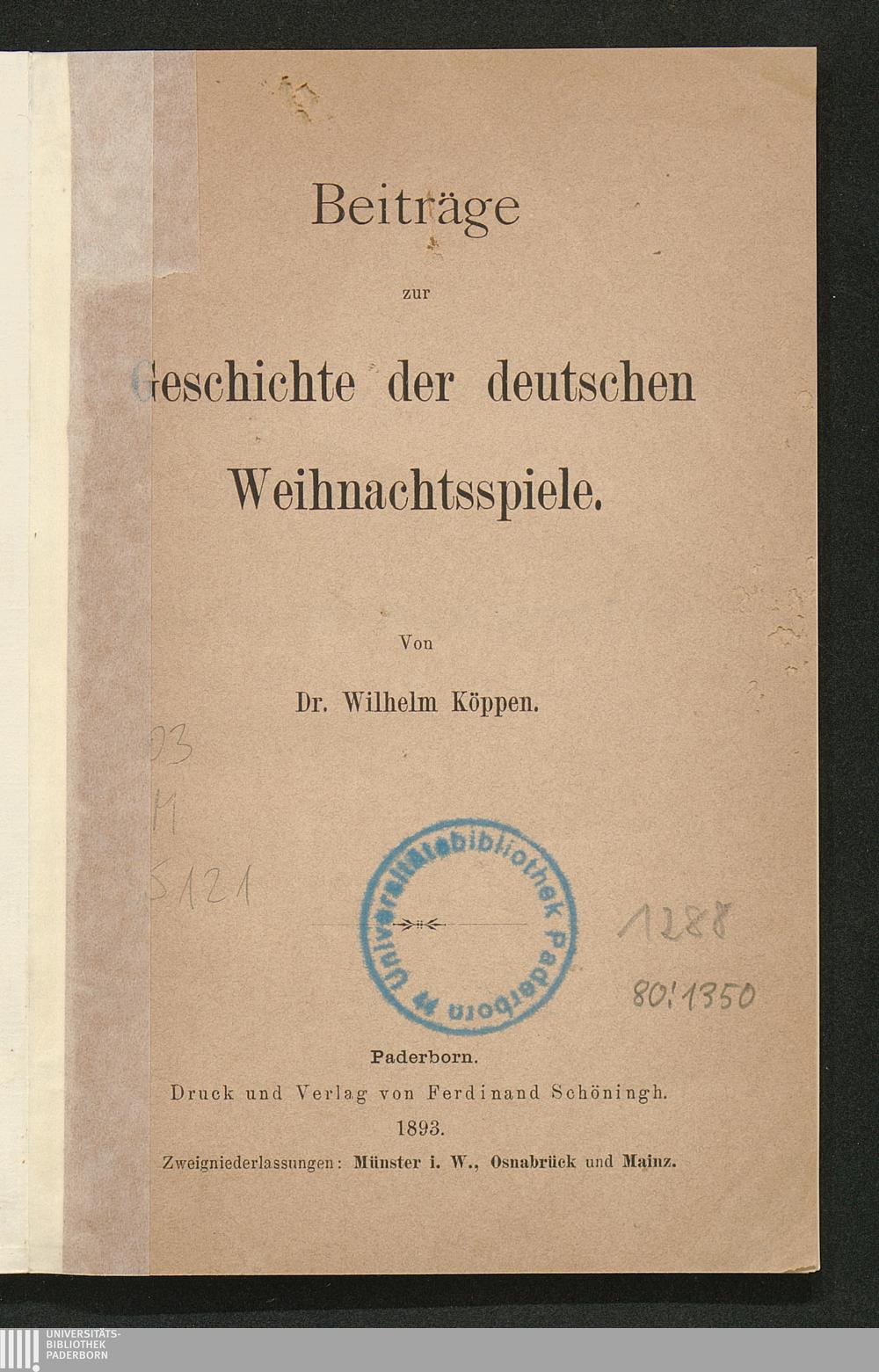 Beiträge zur Geschichte der deutschen Weihnachtsspiele / von Wilhelm Köppen