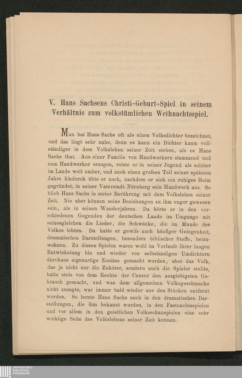 V. Hans Sachsens Christi-Geburt-Spiel in seinem Verhältnis zum volkstümlichen We[...]