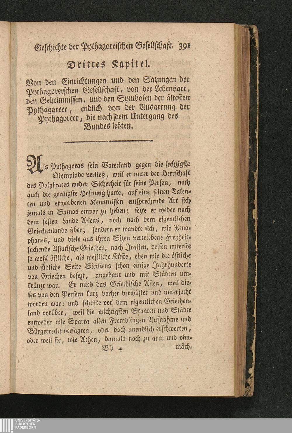 Drittes Buch. Geschichte der Pythagoreischen Gesellschaft, und ihrer Verdienste um[...]