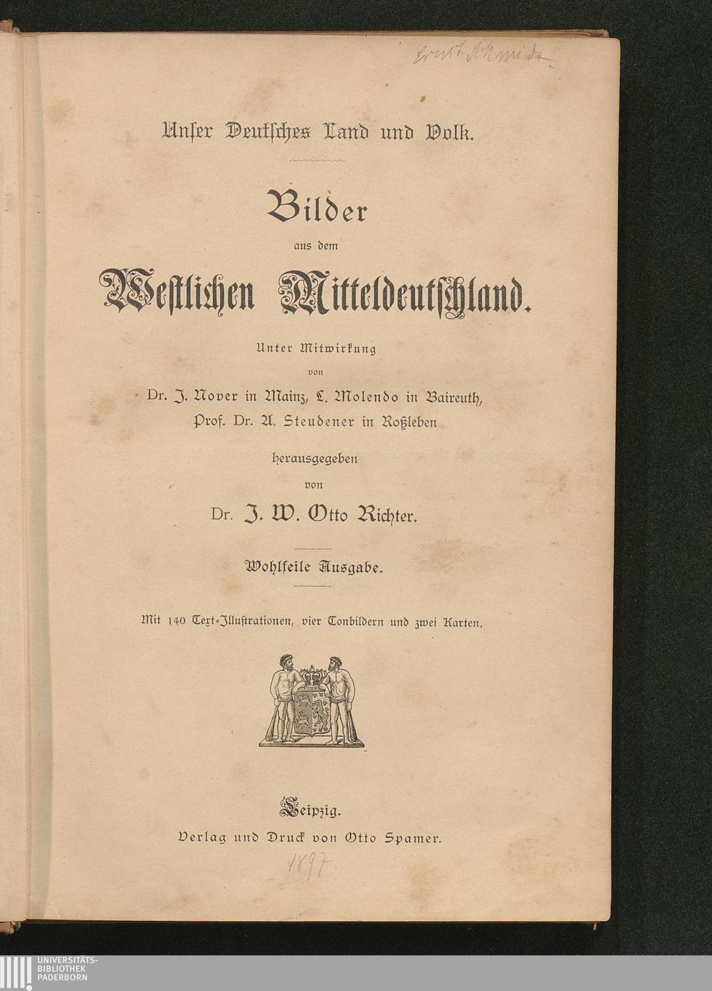 Bilder aus dem Westlichen Mitteldeutschland : mit 140 Text-Ill., 4 Tonbildern und 2 Kt. / unter Mitw. von ... hrsg. von J. W. Otto Richter