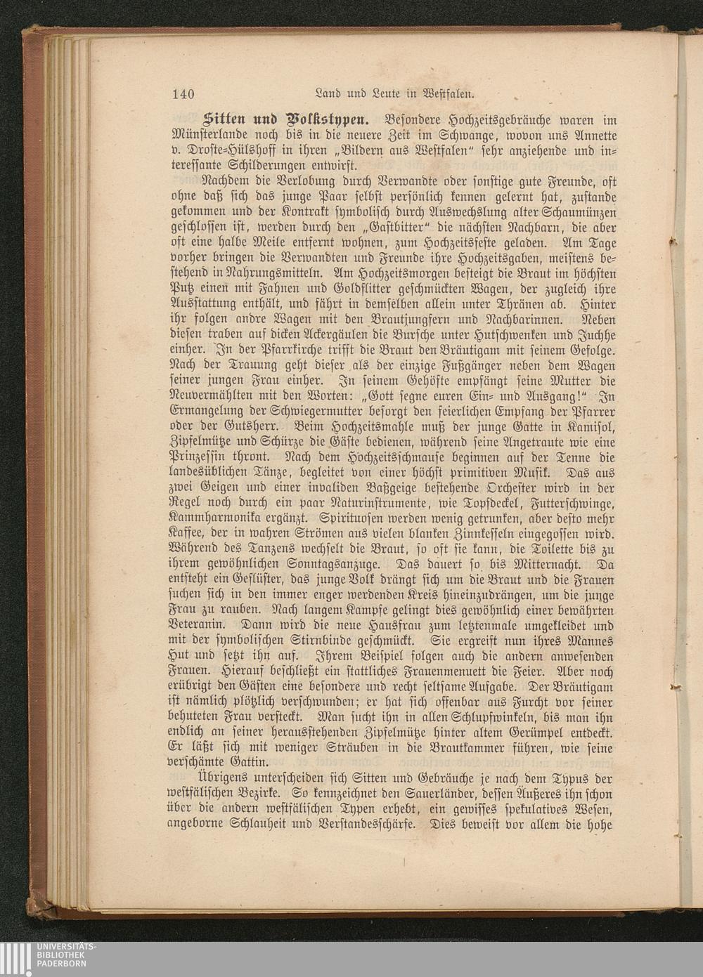 Westfälische Sitten, Feste und Volkstypen.