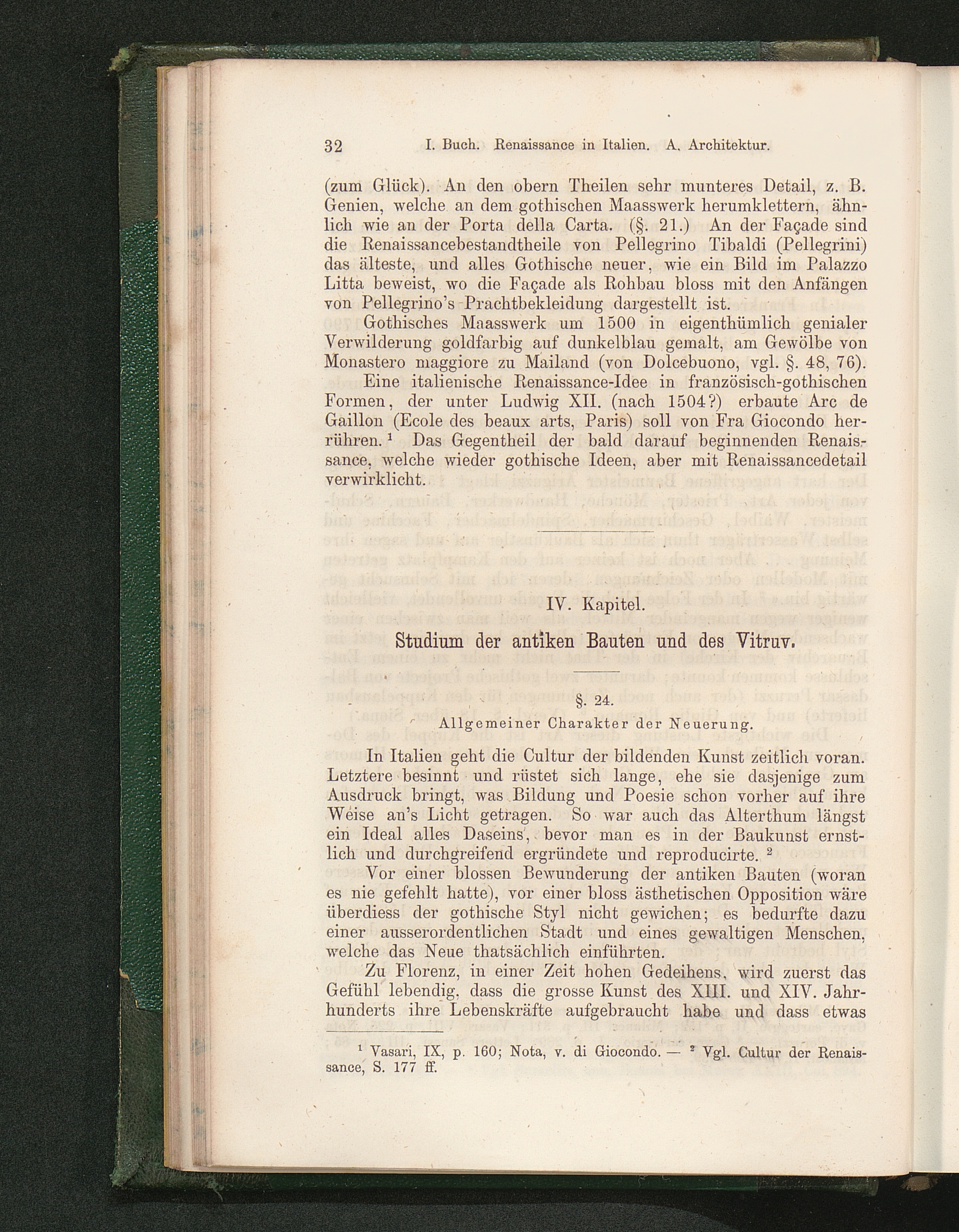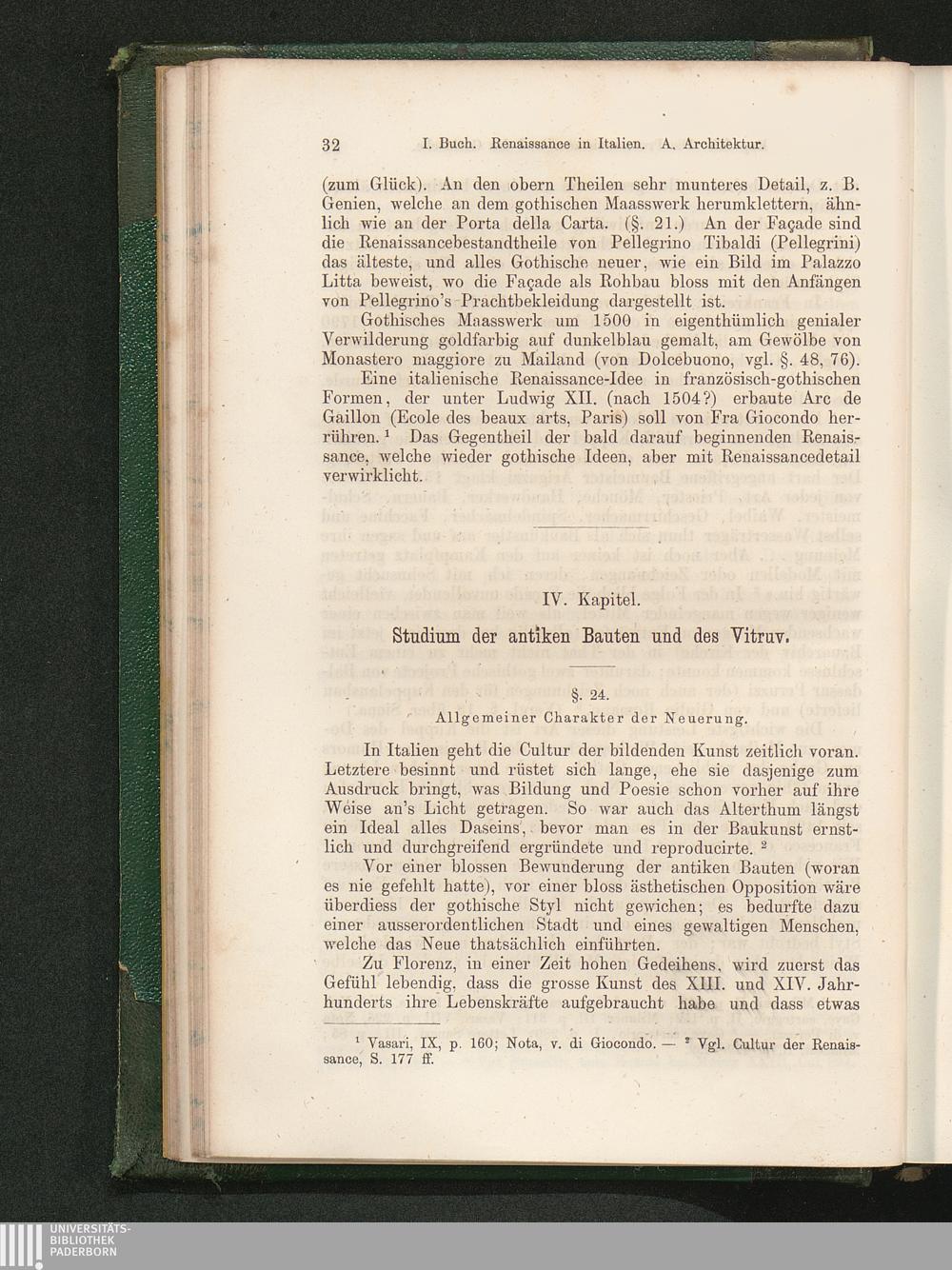 IV. Kapitel. Studium der antiken Bauten und des Vitruv.