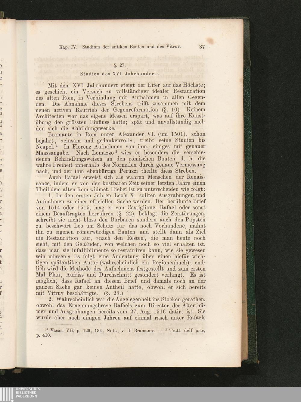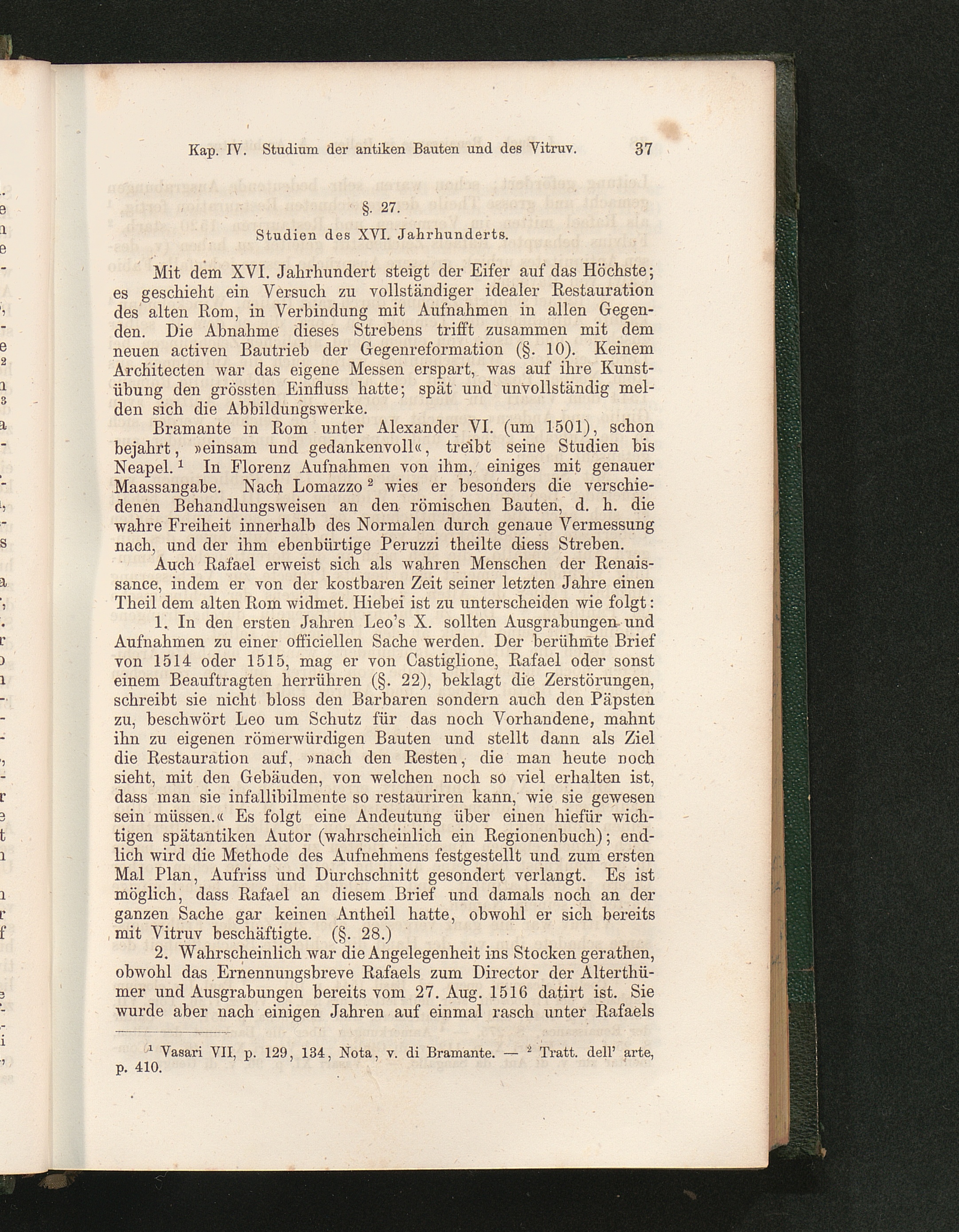 IV. Kapitel. Studium der antiken Bauten und des Vitruv.