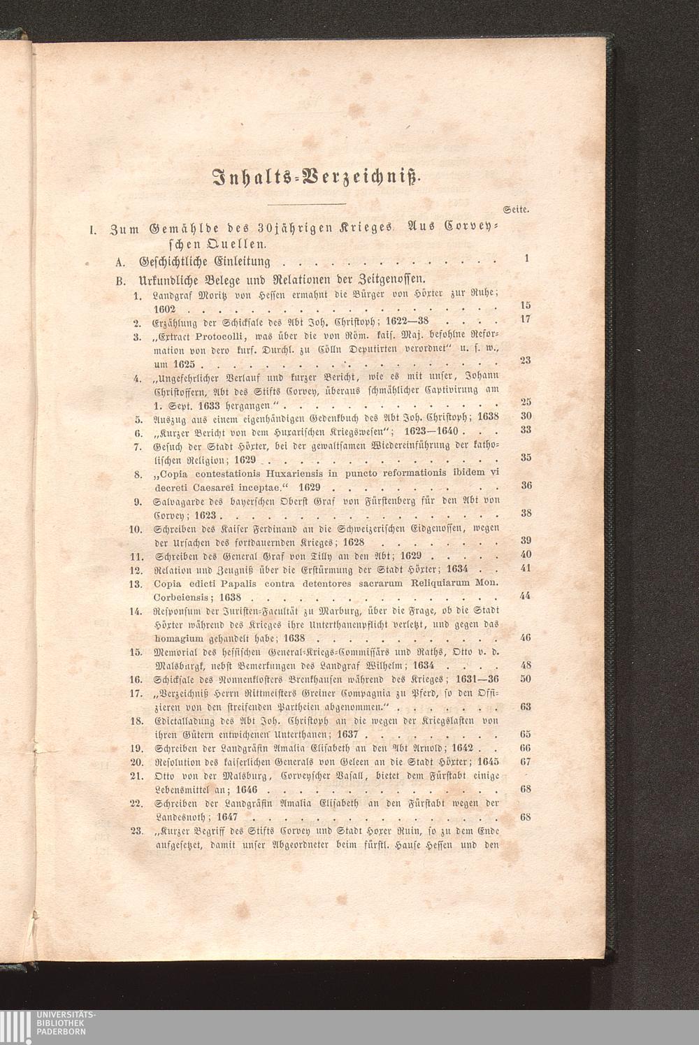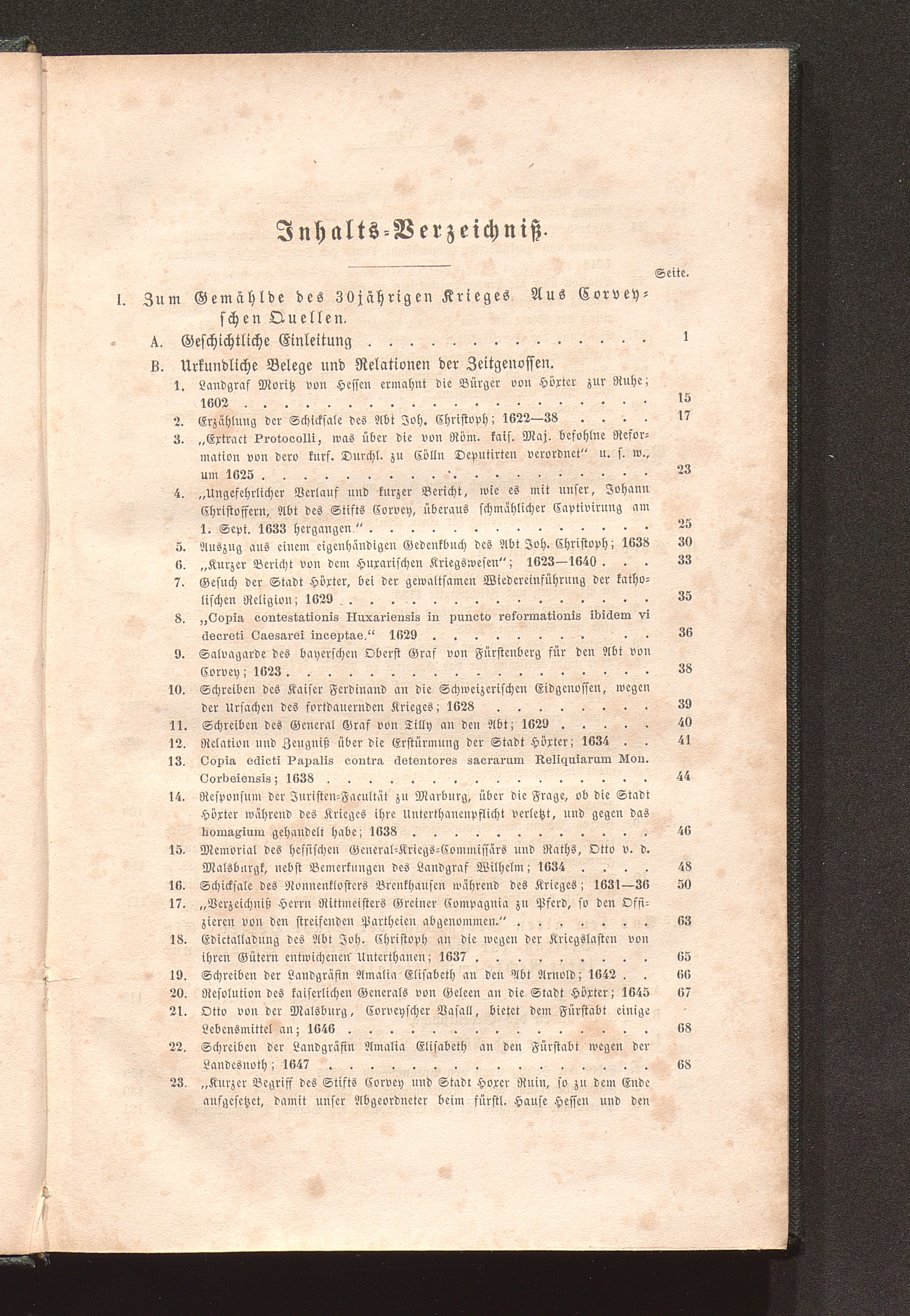 Inhalts-Verzeichniß.