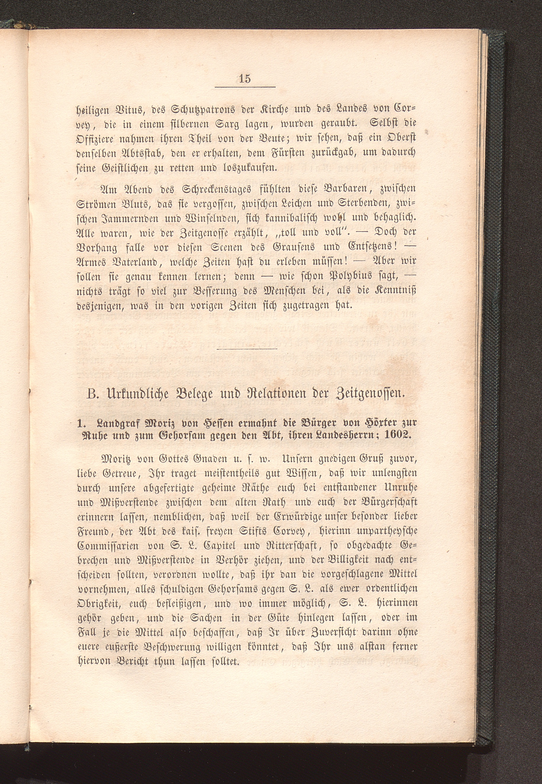 1. Landgraf Moritz von Hessen ermahnt die Bürger von Höxter zur Ruhe; 1602