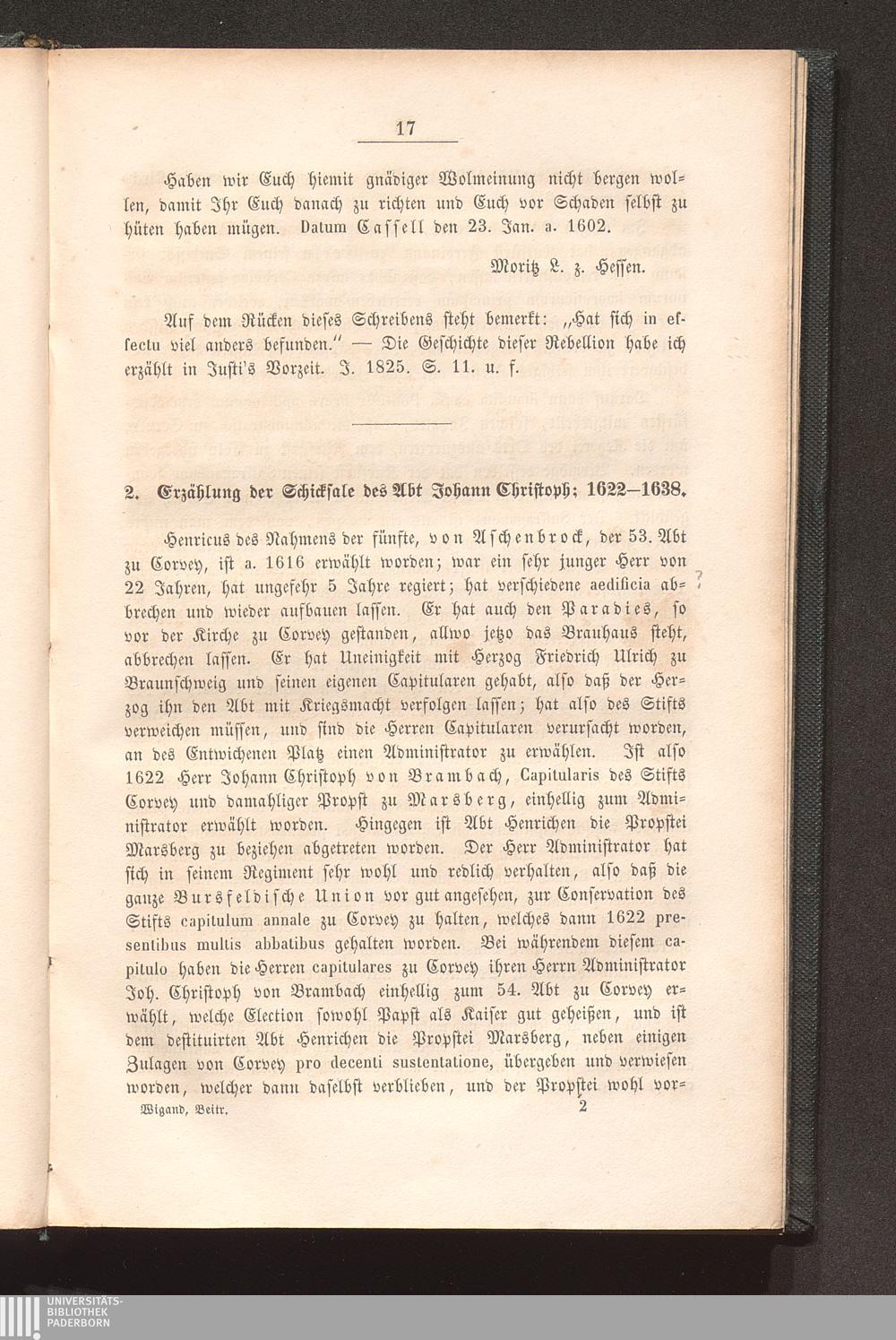 2. Erzählung der Schicksale des Abt Joh. Christoph; 1622-38