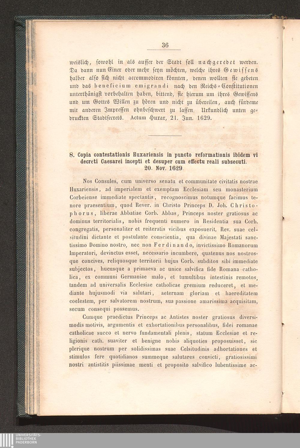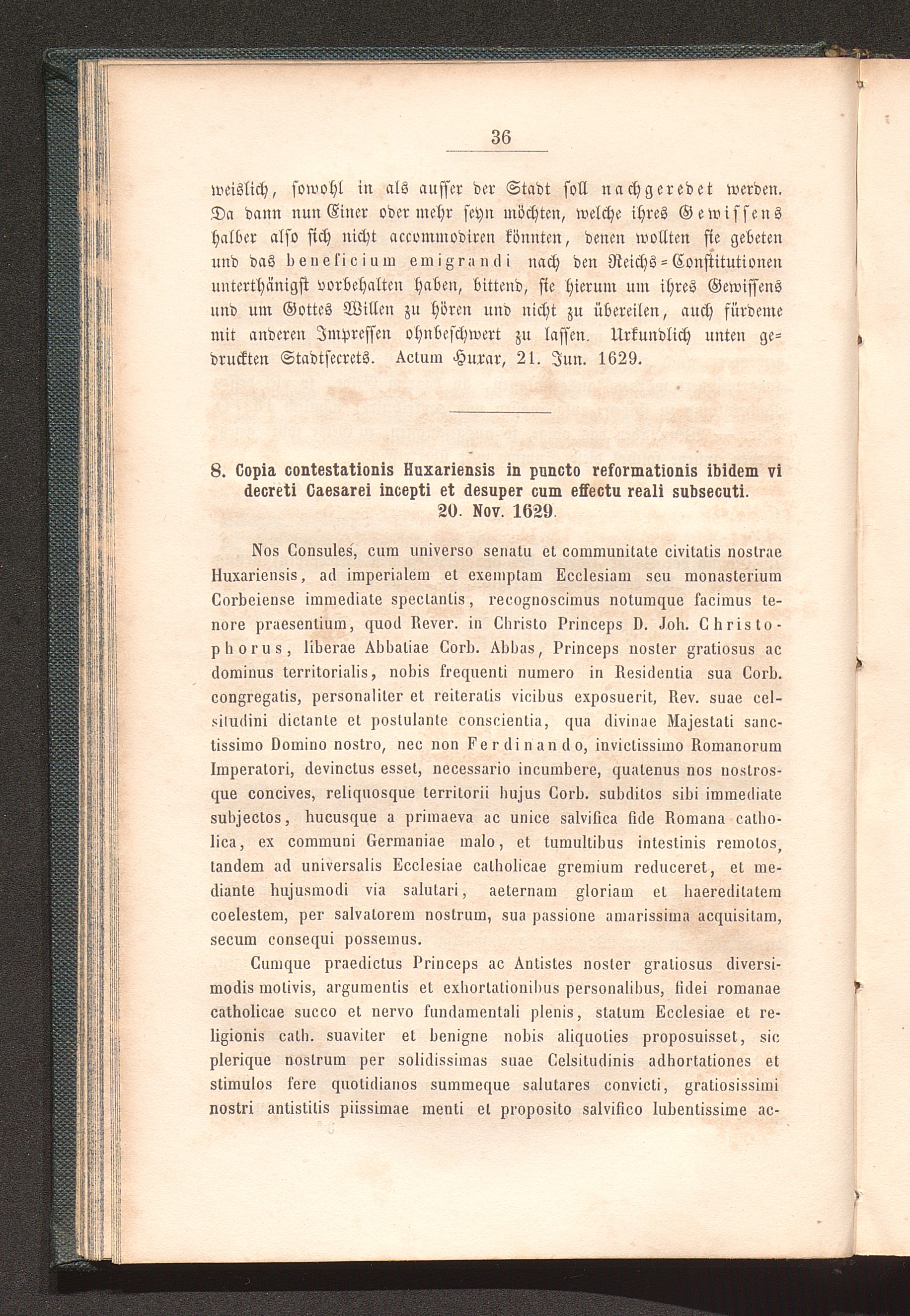 8. „Copia contestationis Huxariensis in puncto reformationis ibidem vi decreti Caesarei[...]