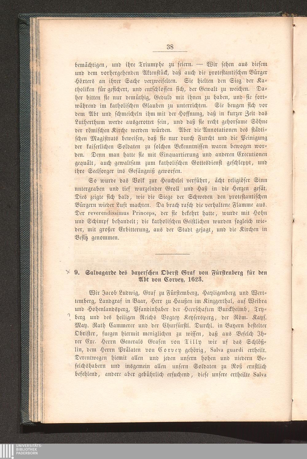 9. Salvagarde des bayerschen Oberst Graf von Fürstenberg für den Abt von Corvey;[...]