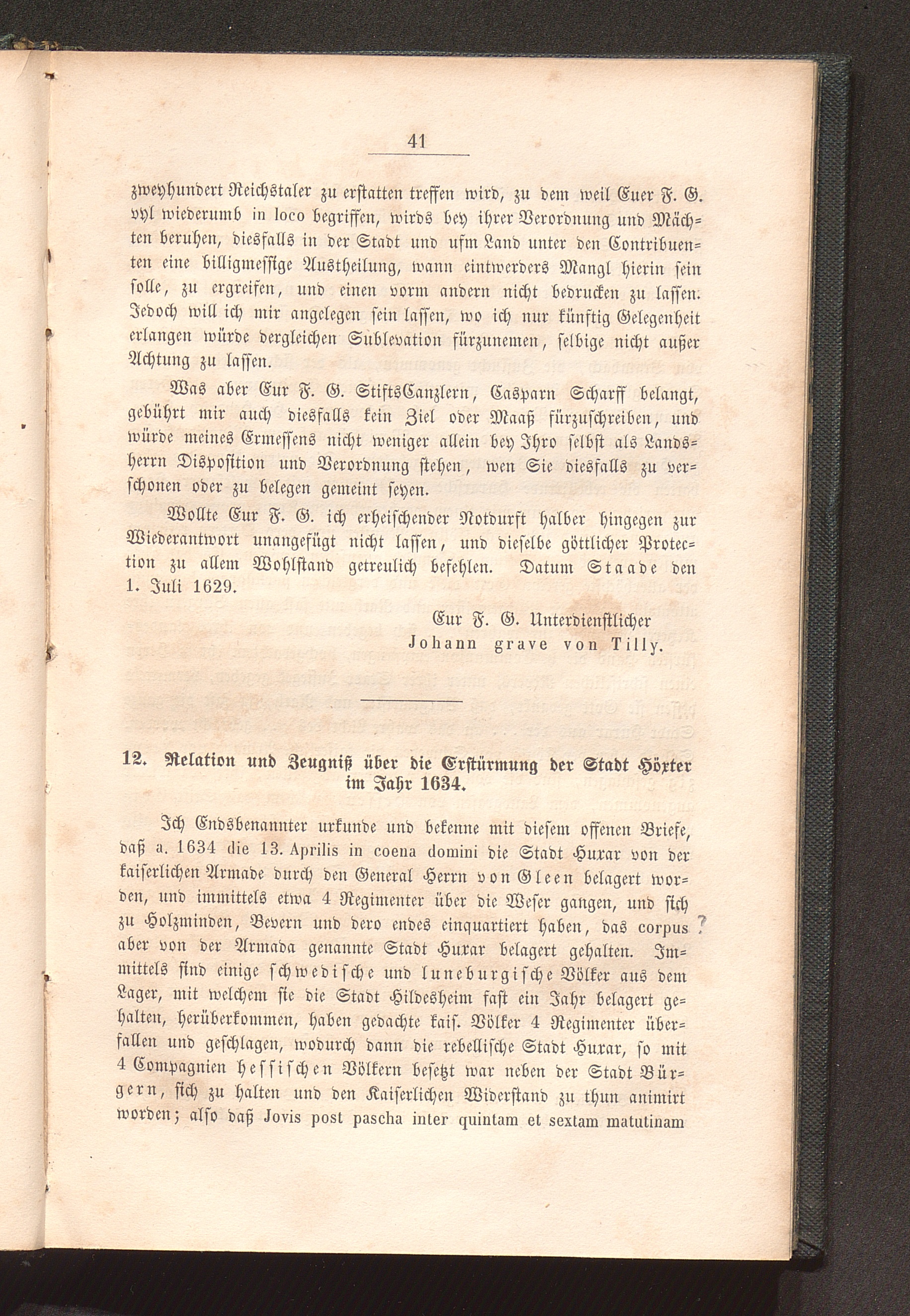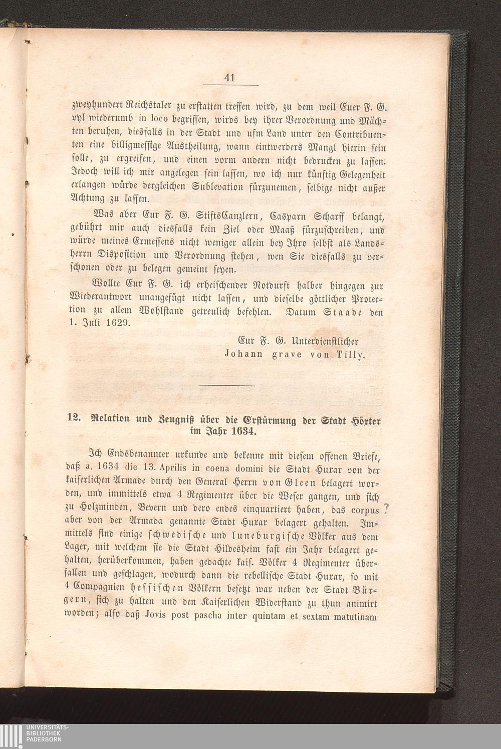12. Relation und Zeugniß über die Erstürmung der Stadt Höxter; 1634