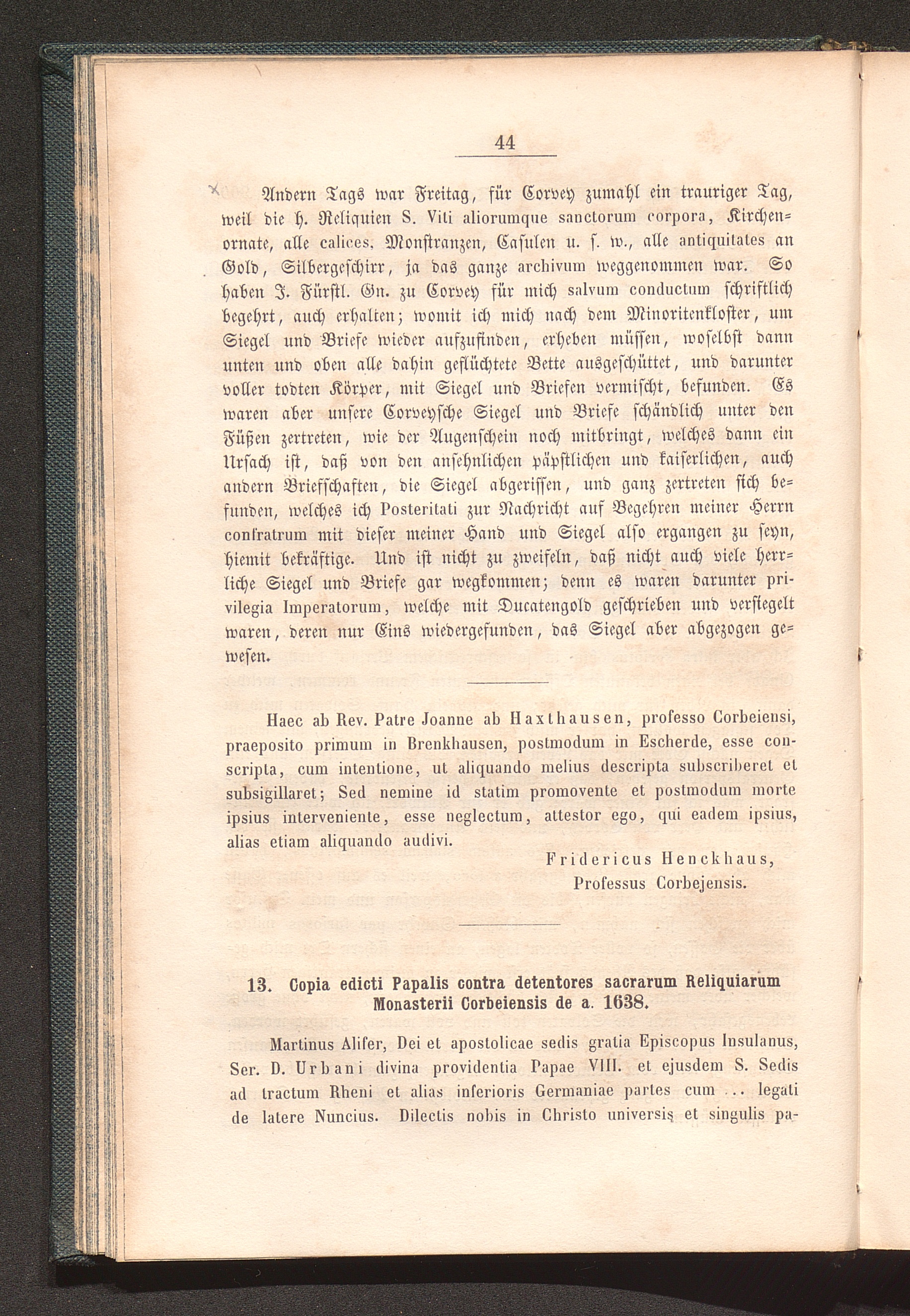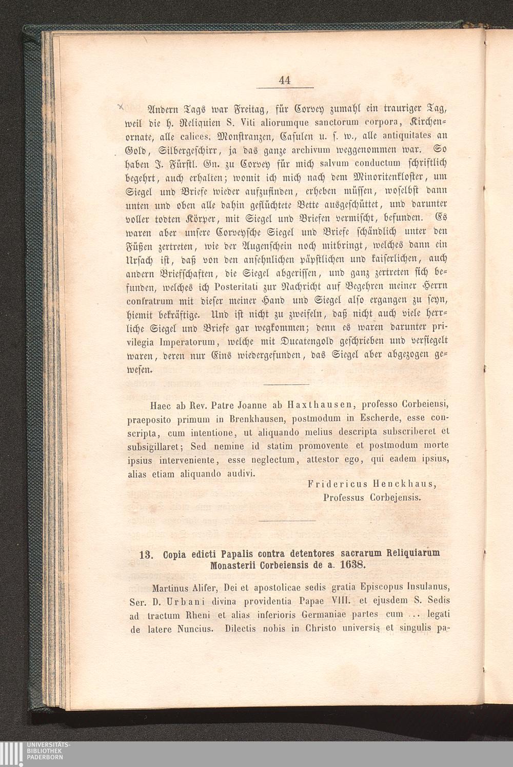 13. Copia edicti Papalis contra detentores sacrarum Reliquiarum Mon. Corbeiensis;[...]