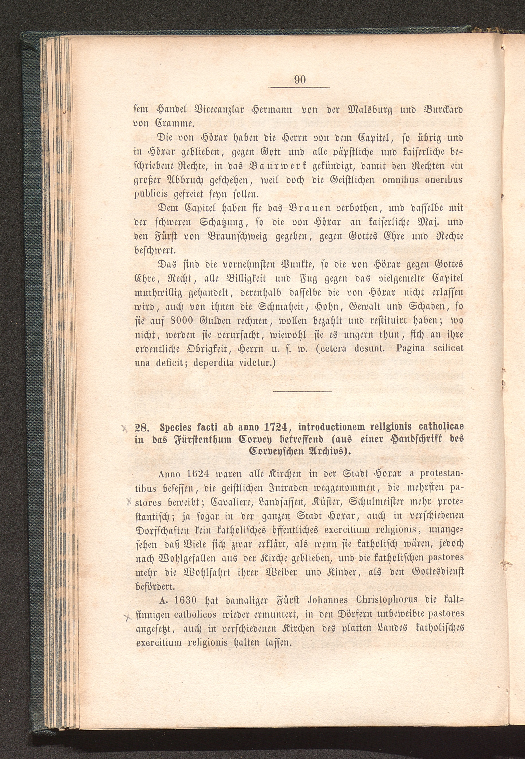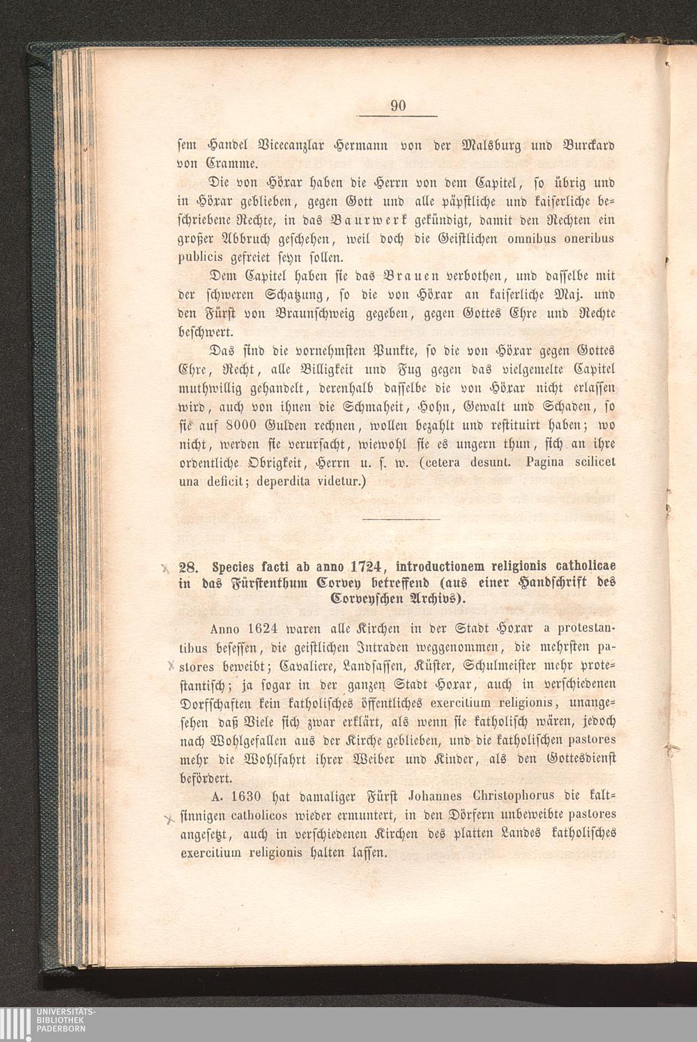 28. „Species Facti ab a. 1724, introductionem religionis catholicae in das Fürstenthum[...]