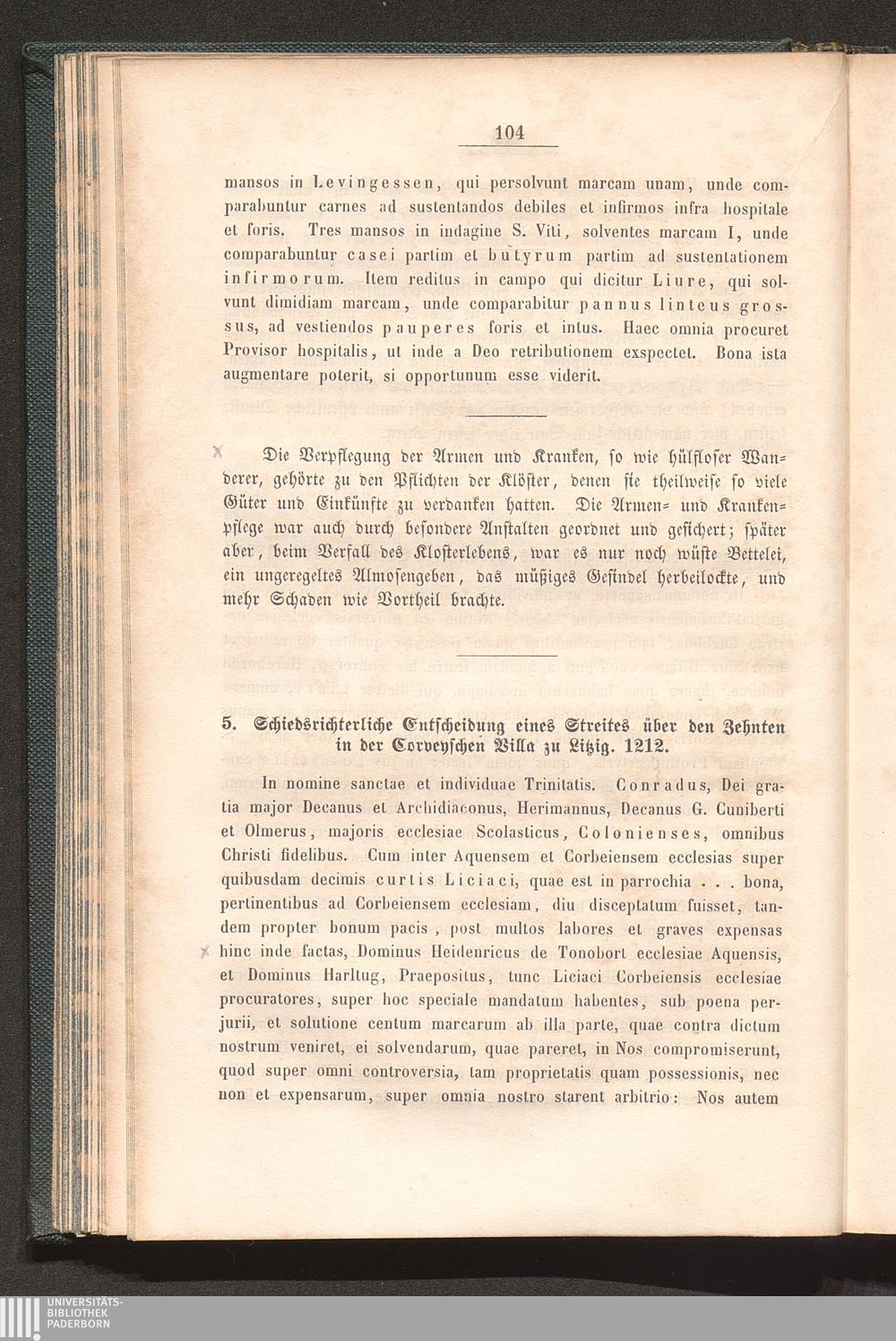 5. Schiedsrichterliche Entscheidung eines Streits über den Zehnten zu Litzig; 12[...]