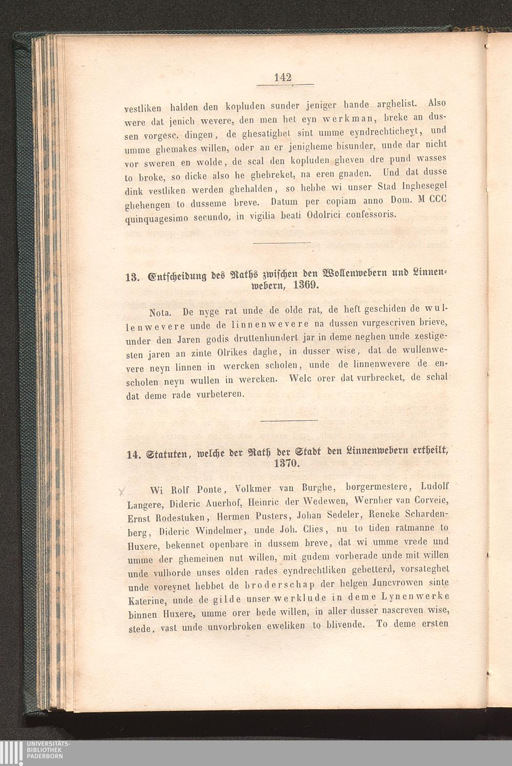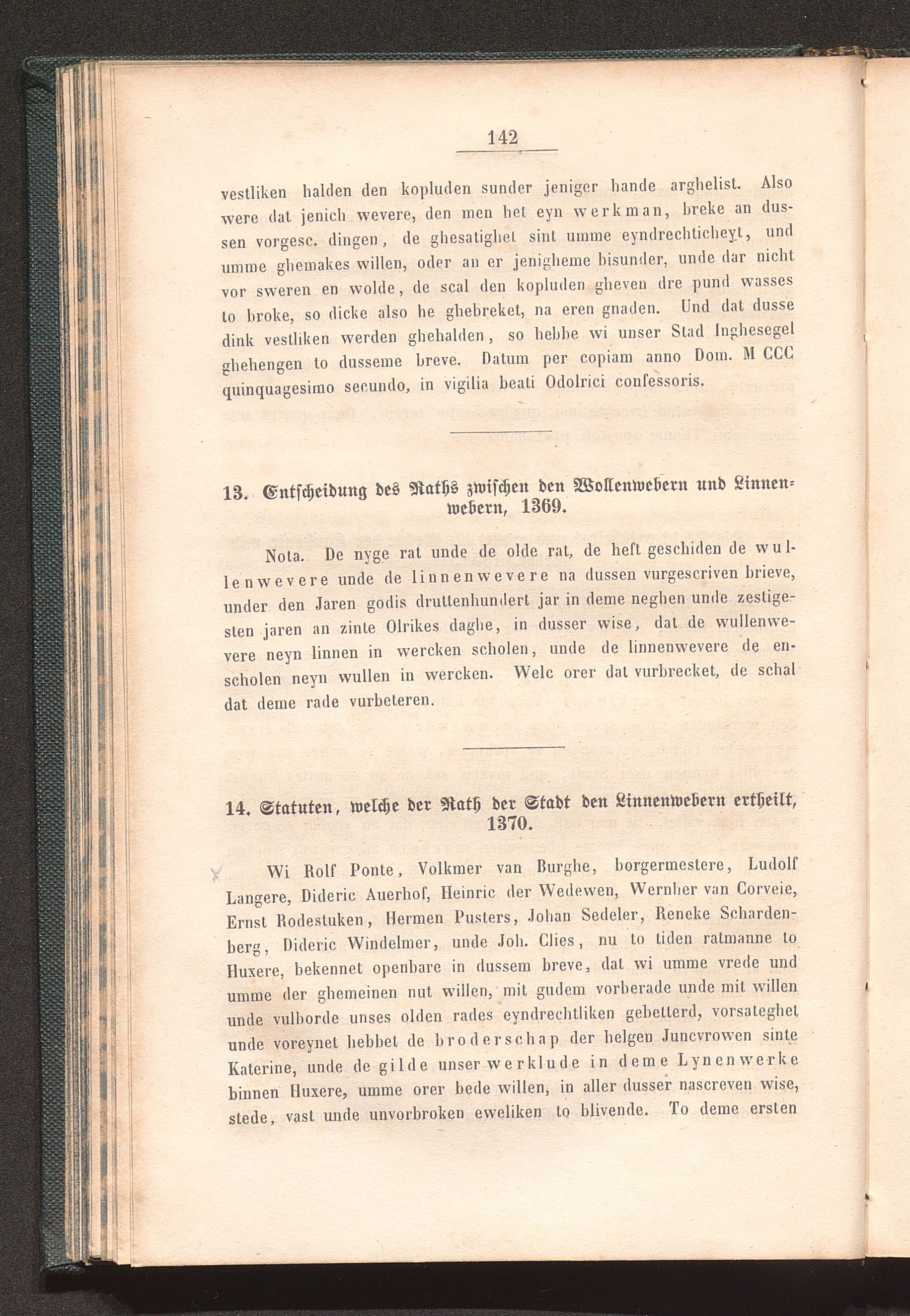 14. Statuten, welche der Rath der Stadt den Linnenwebern ertheilt; 1370