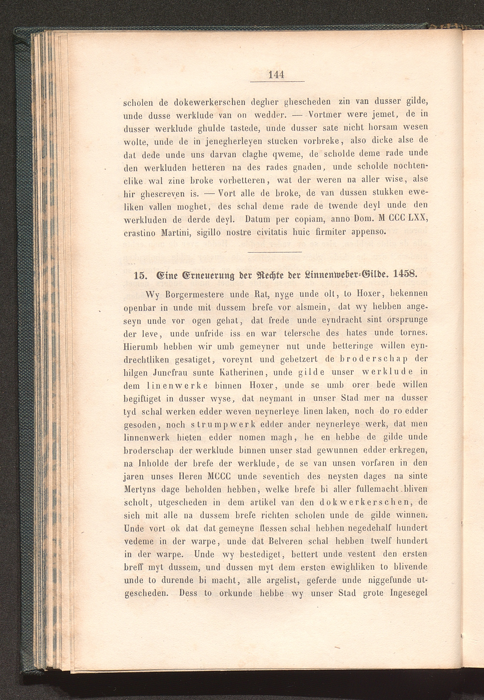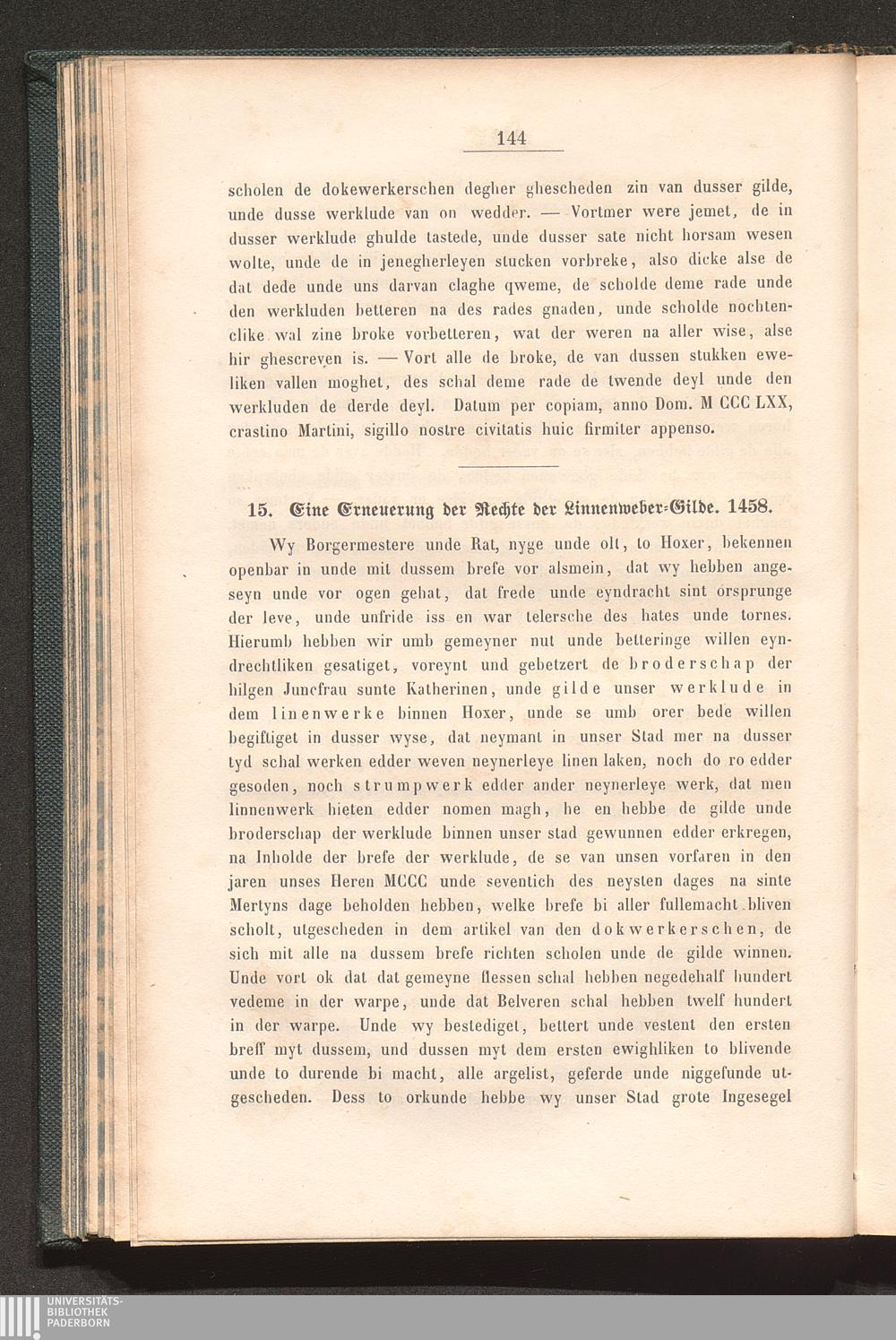 15. Eine Erneuerung der Rechte der Linnenweber-Gilde; 1458