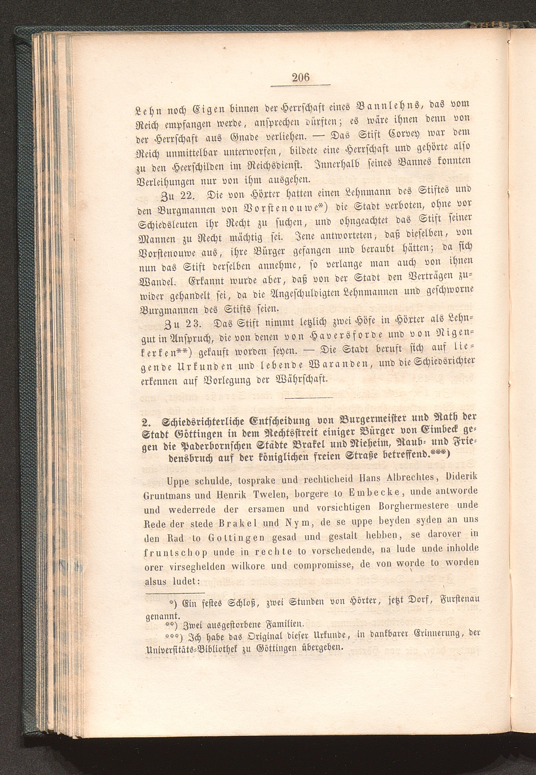 2. Schiedsrichterliche Entscheidung von Bürgermeister und Rath zu Göttingen in dem[...]