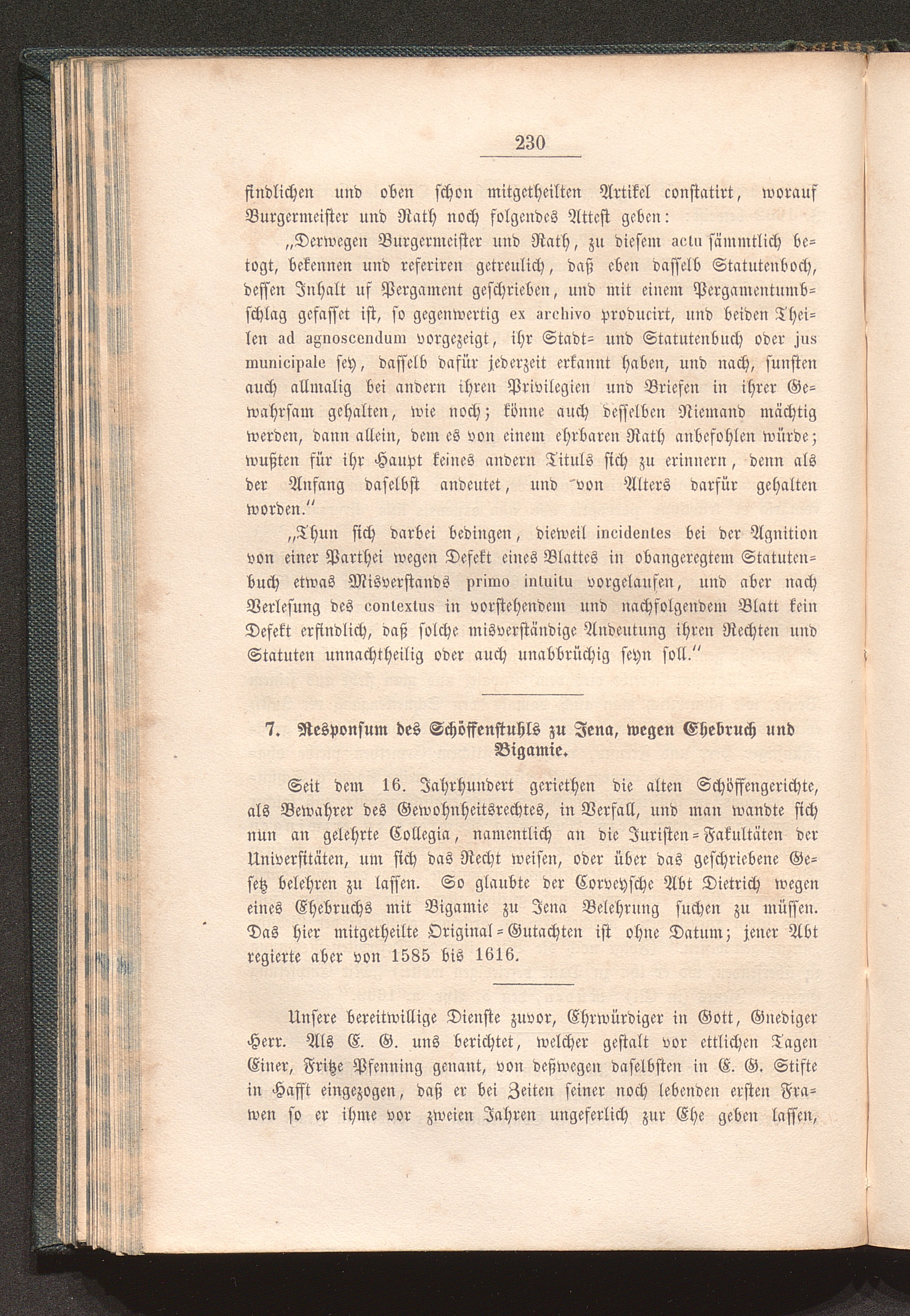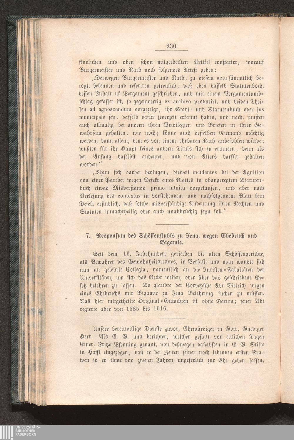 7. Responsum des Schöffenstuhls zu Jena, wegen Ehebruch und Bigamie