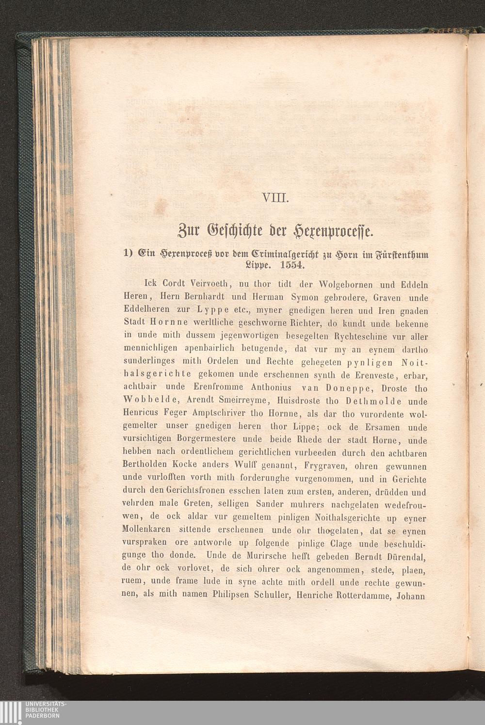 1. Ein Hexenprozeß vor dem Criminalgericht zu Horn, im Fürstenthum Lippe; 1554