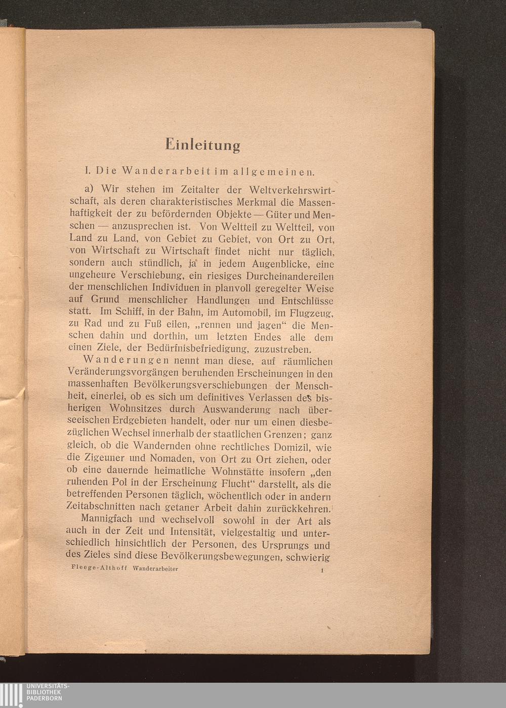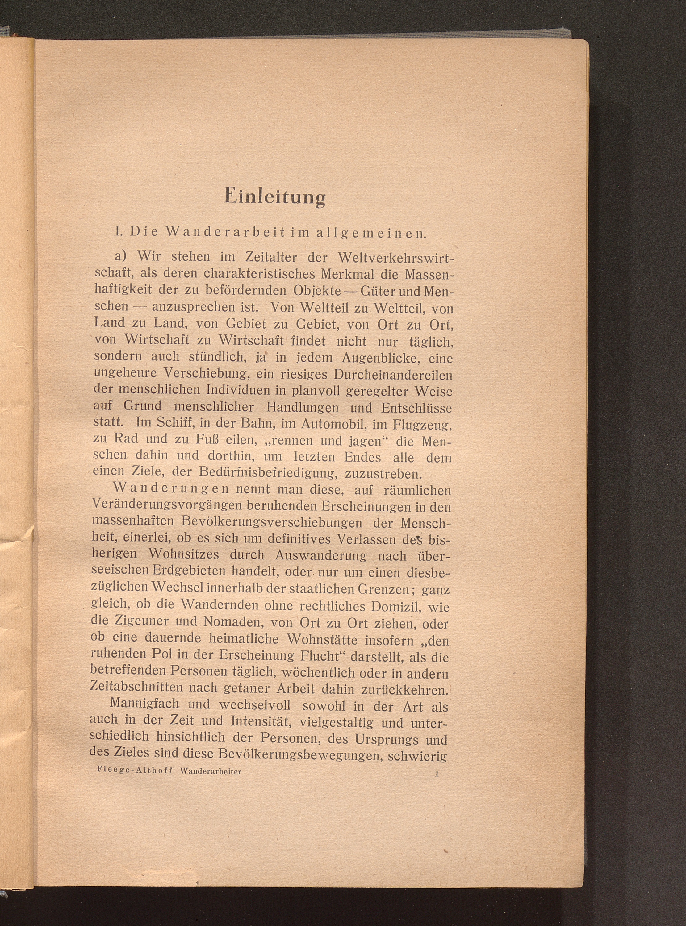 I. Die Wanderarbeit im allgemeinen