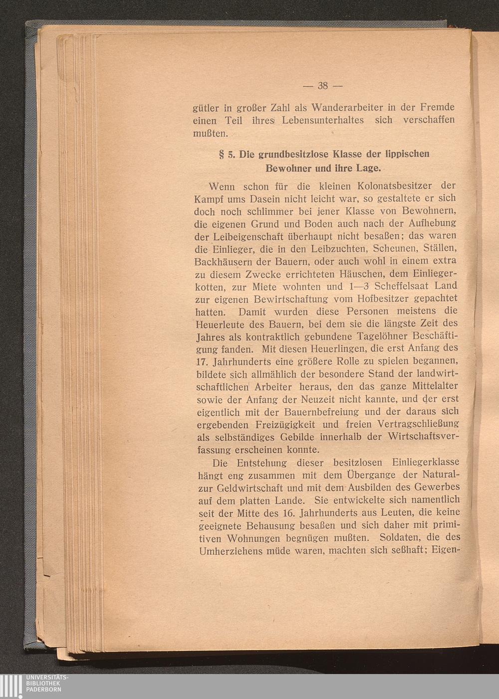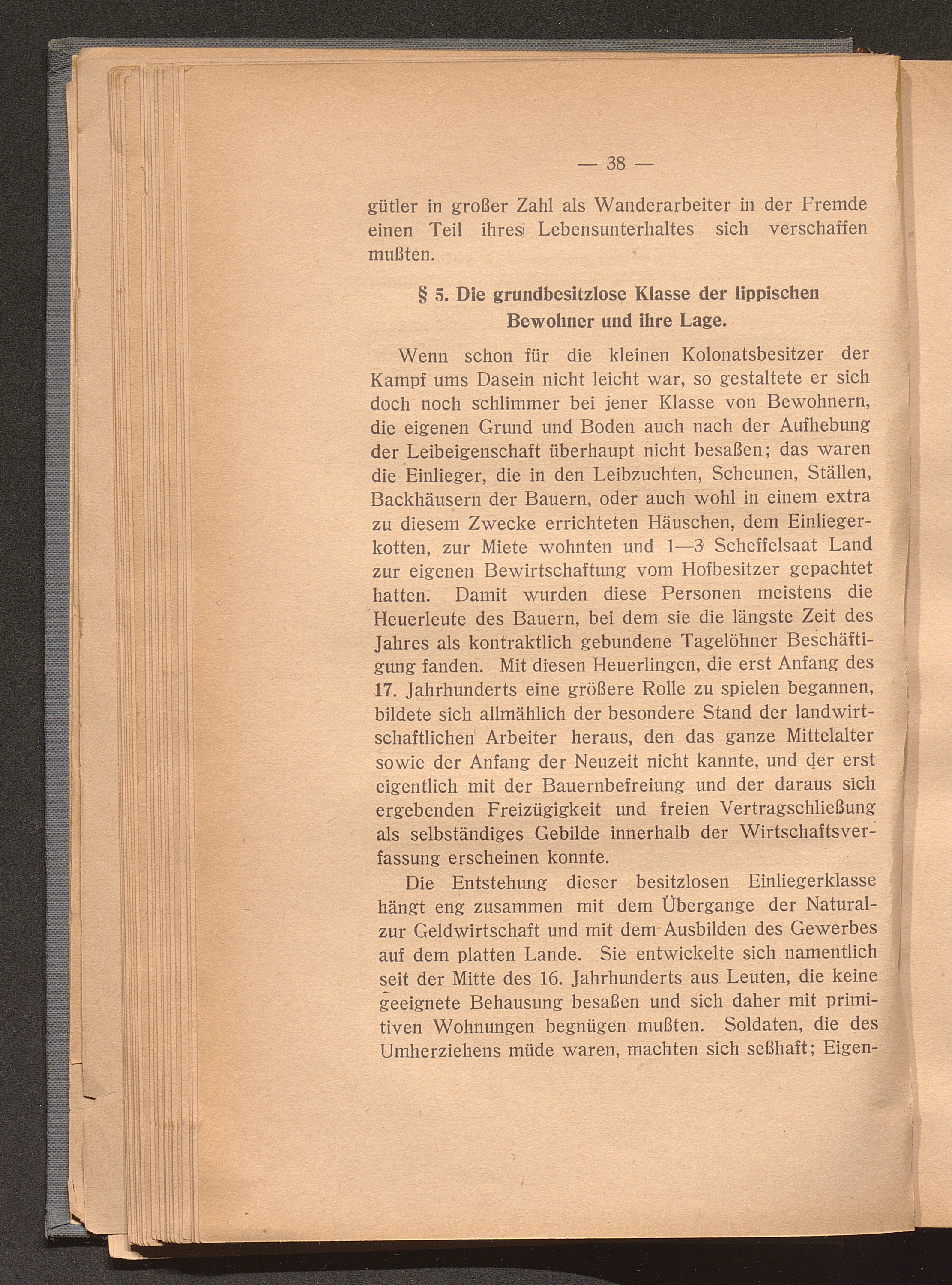 § 5. Die grundbesitzlose Klasse der Bewohner Lippes und ihre Lage