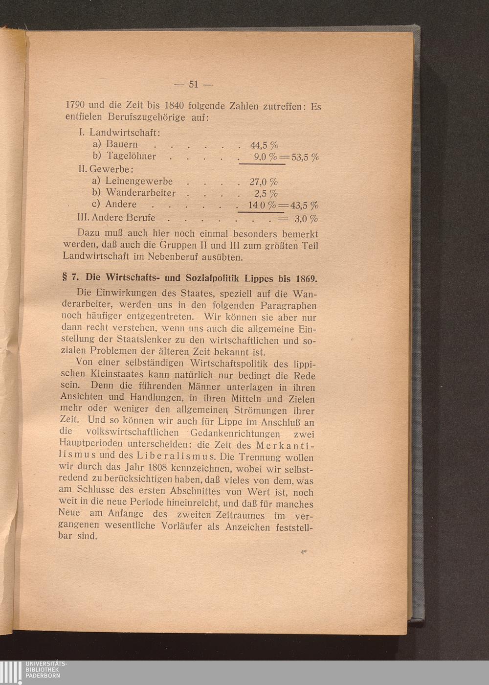 § 7. Die Wirtschafts- und Sozialpolitik Lippes bis 1869