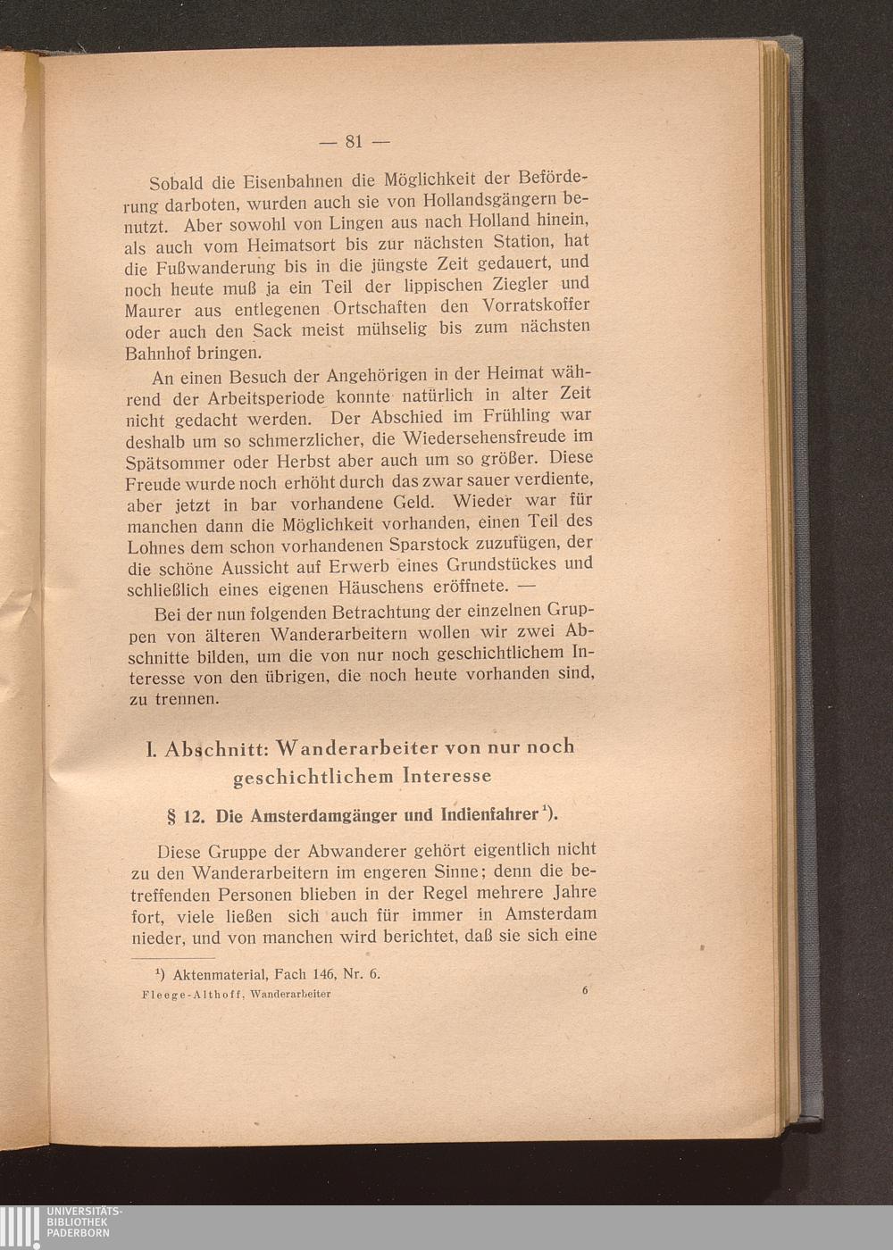Erster Teil. Die lippischen Wanderarbeiter der älteren Zeit. (Die Hollands- und [...]