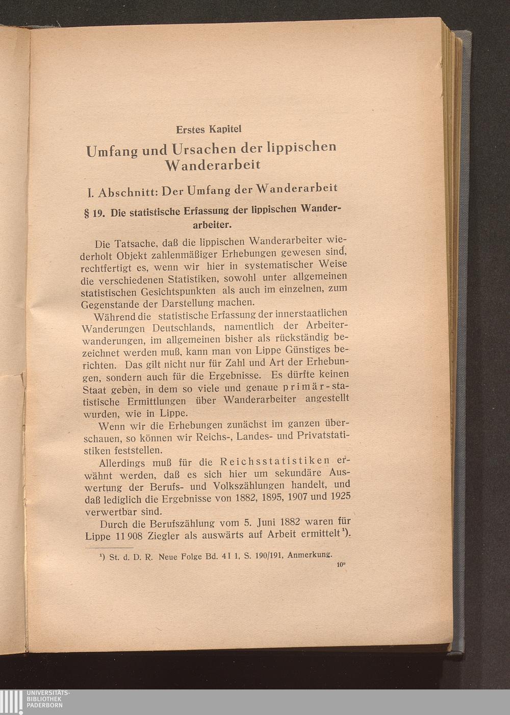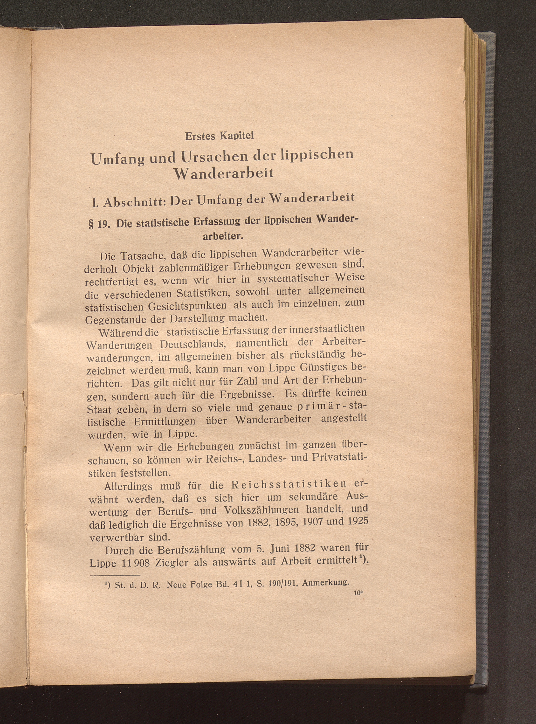 § 19. Die statistische Erfassung der lippischen Wanderarbeiter