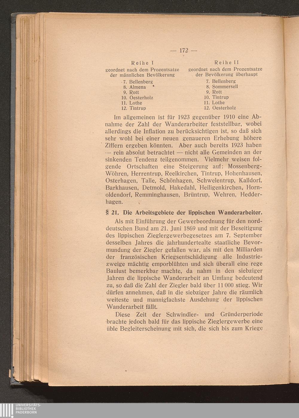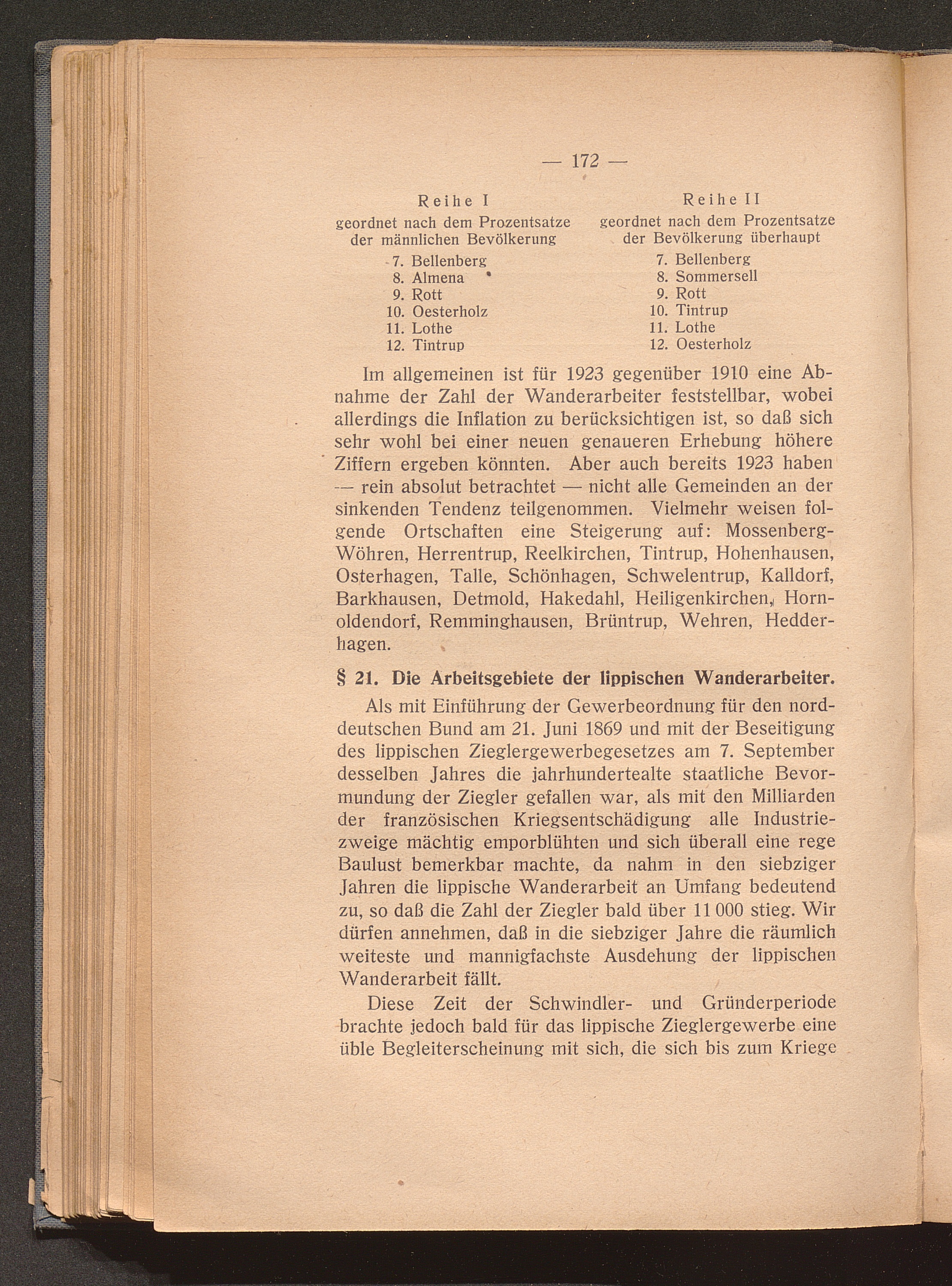 § 21. Die Arbeitsgebiete der lippischen Wanderarbeiter