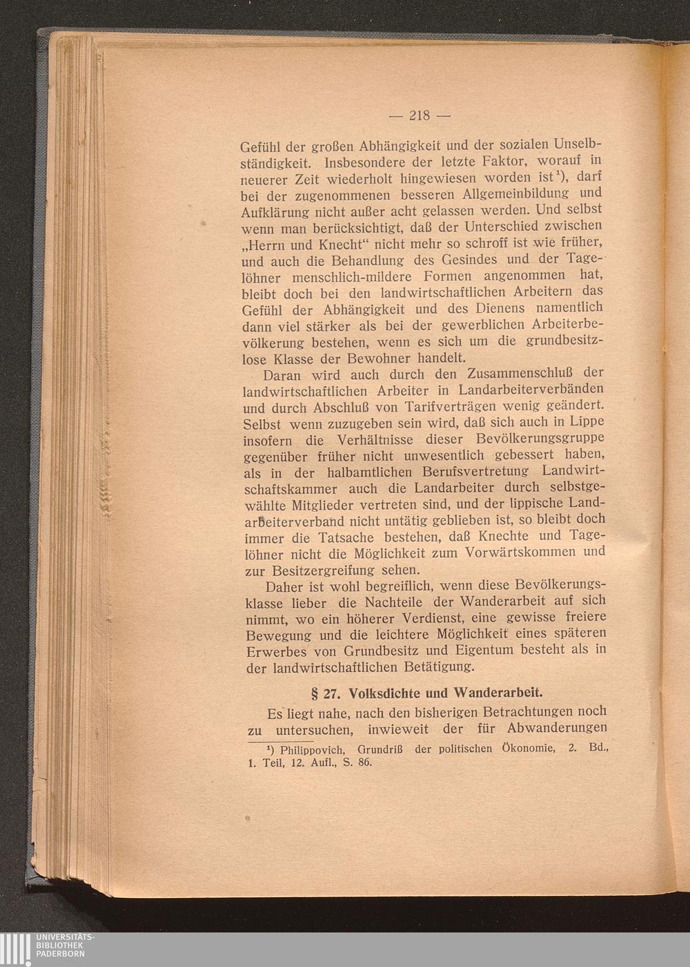 § 27. Volksdichte und Wanderarbeit