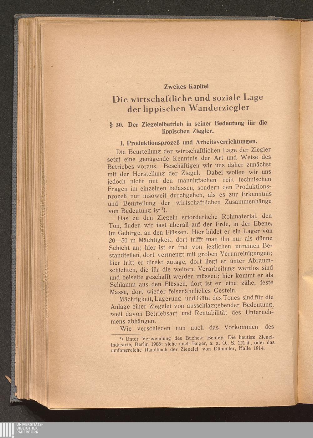 § 30. Der Ziegeleibetrieb in seiner Bedeutung für die lippischen Ziegler