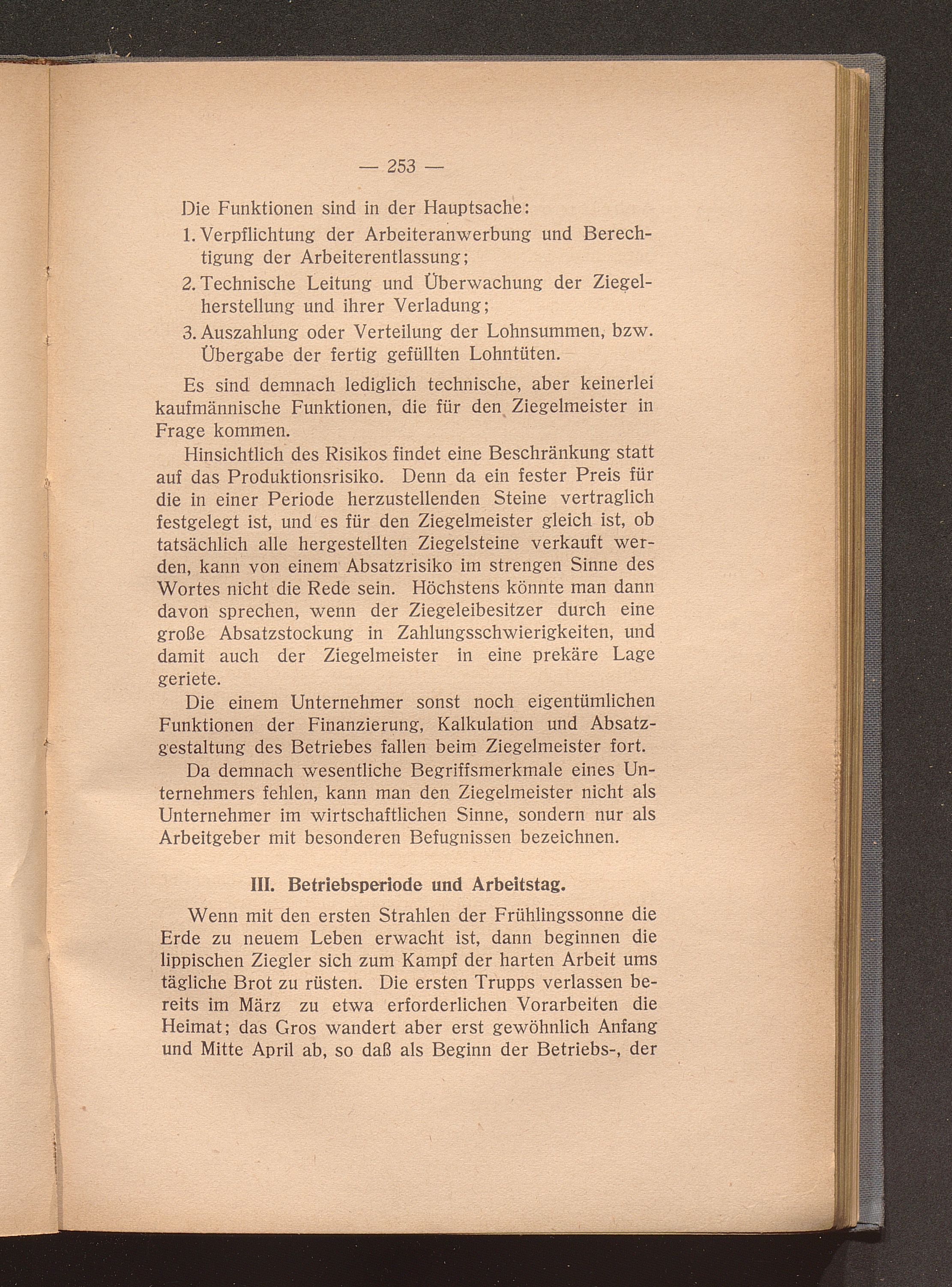 § 30. Der Ziegeleibetrieb in seiner Bedeutung für die lippischen Ziegler