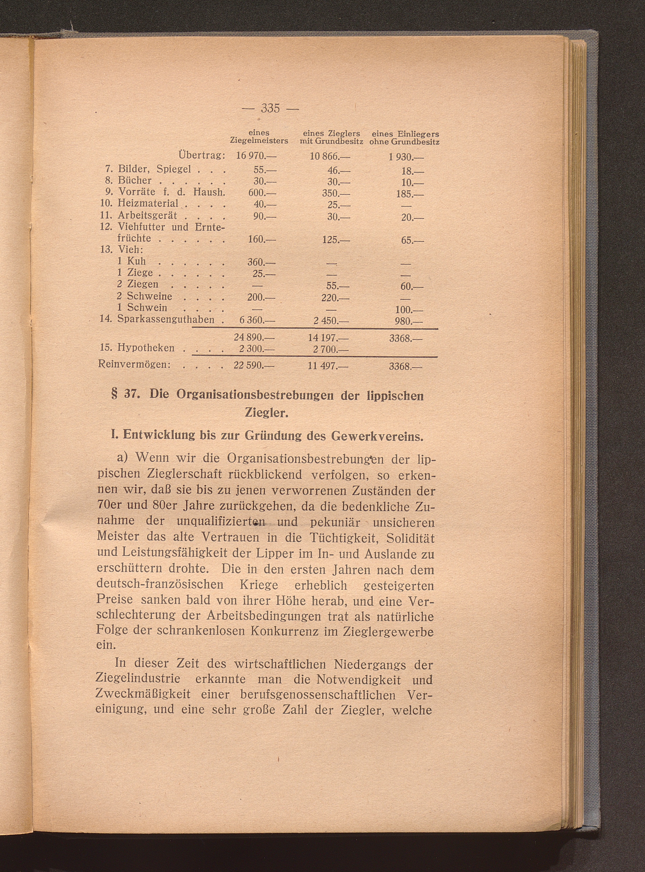 § 37. Die Organisationsbestrebungen der lippischen Ziegler